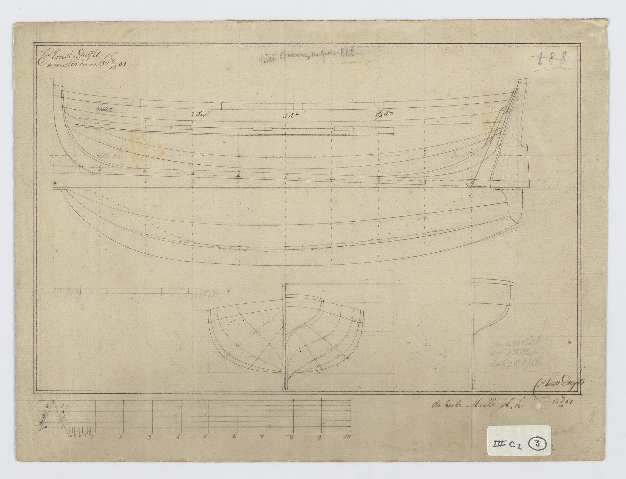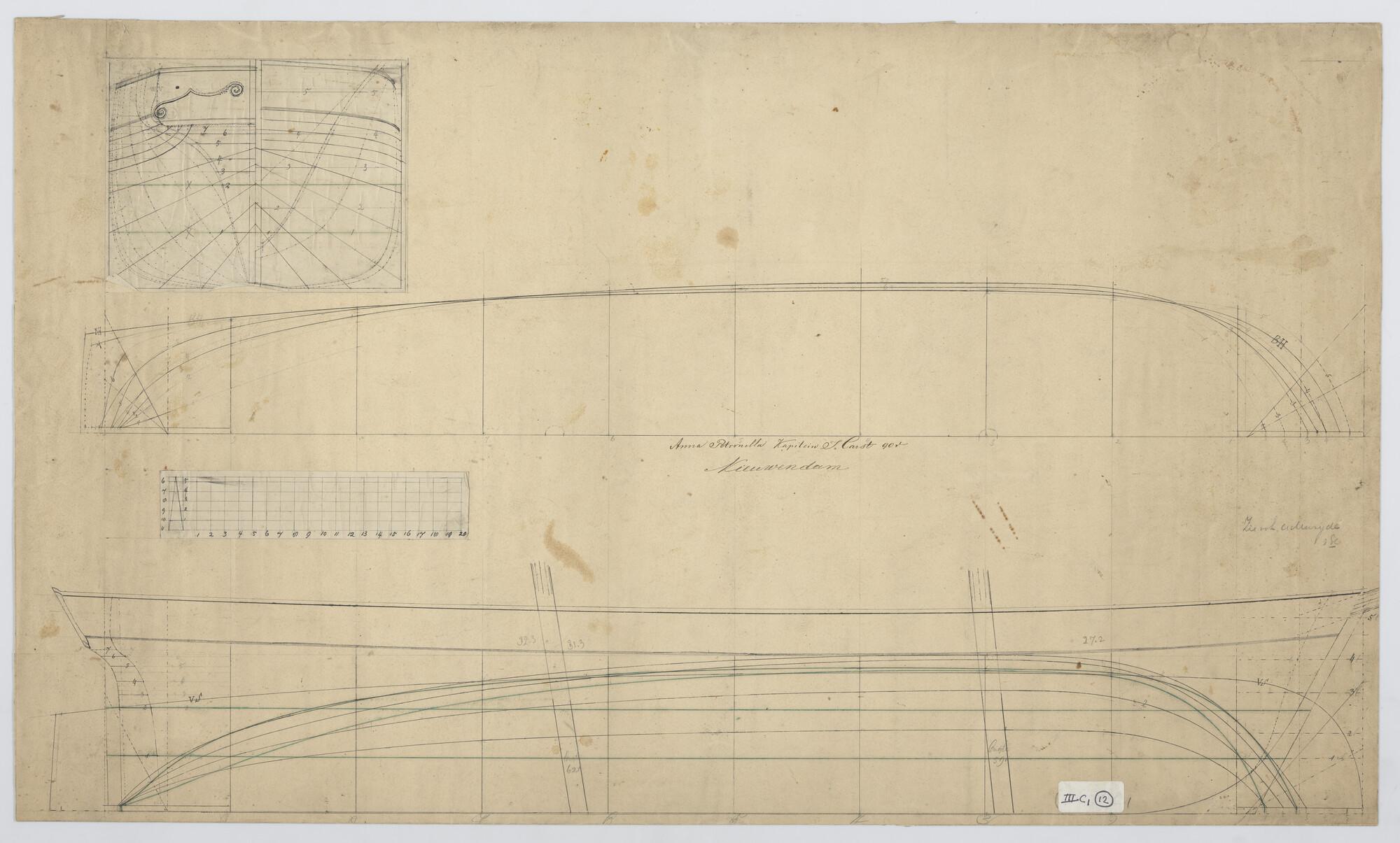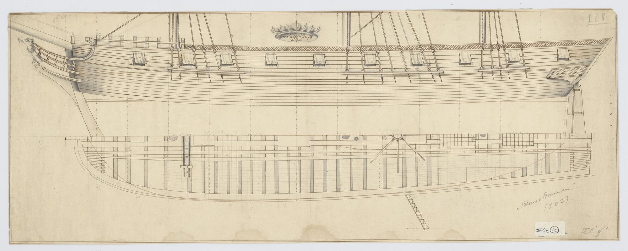 Lijnenplan van het driemastschip 'De Beurs van Amste...