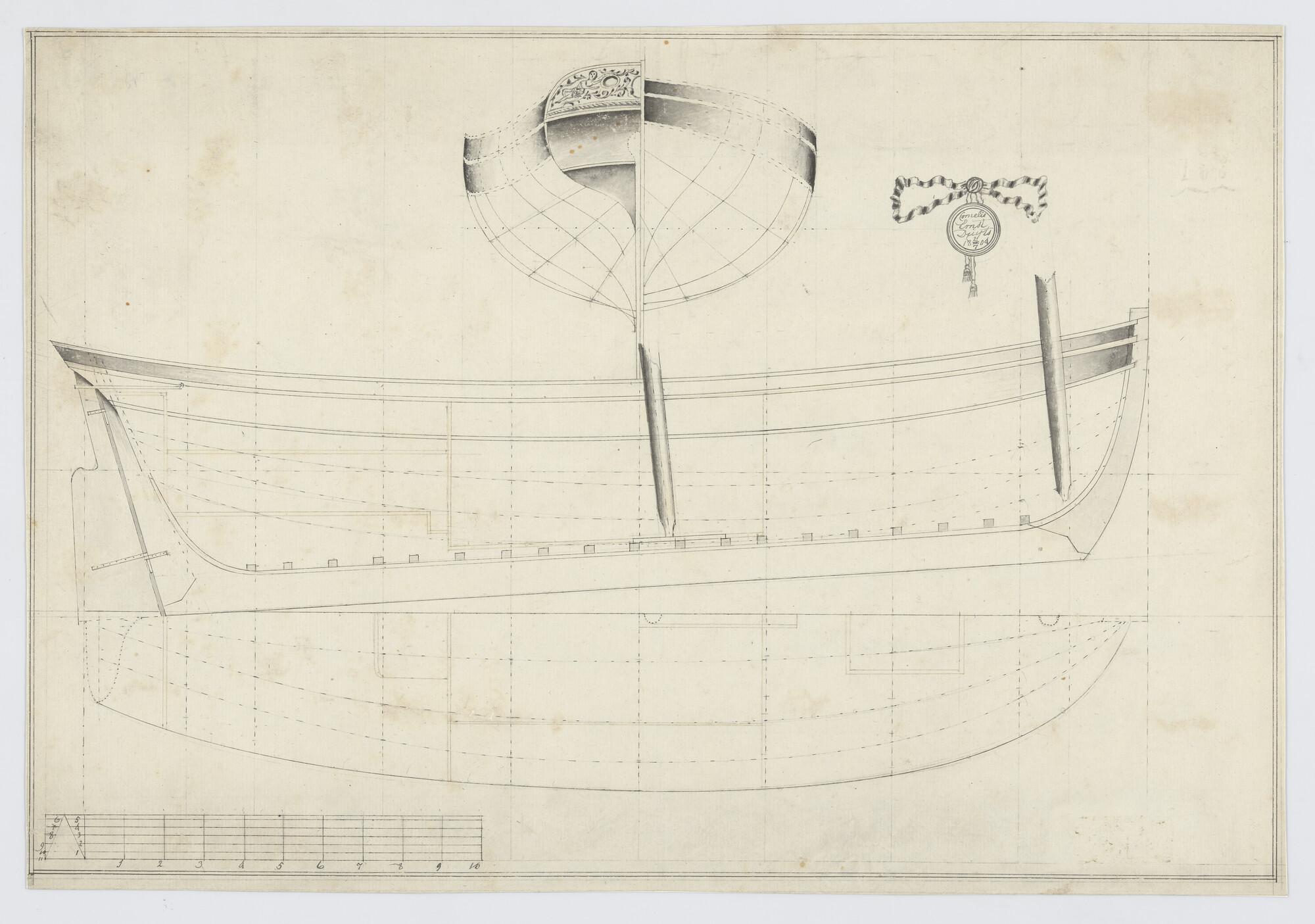 Lijnenplan van een achtriems sloep