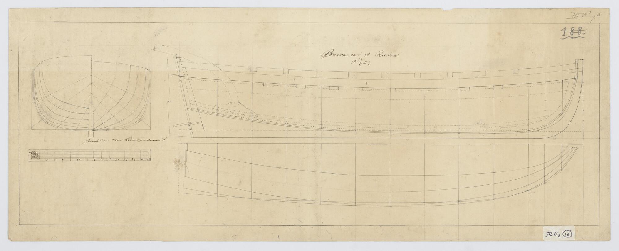 Lijnenplan van een barkas