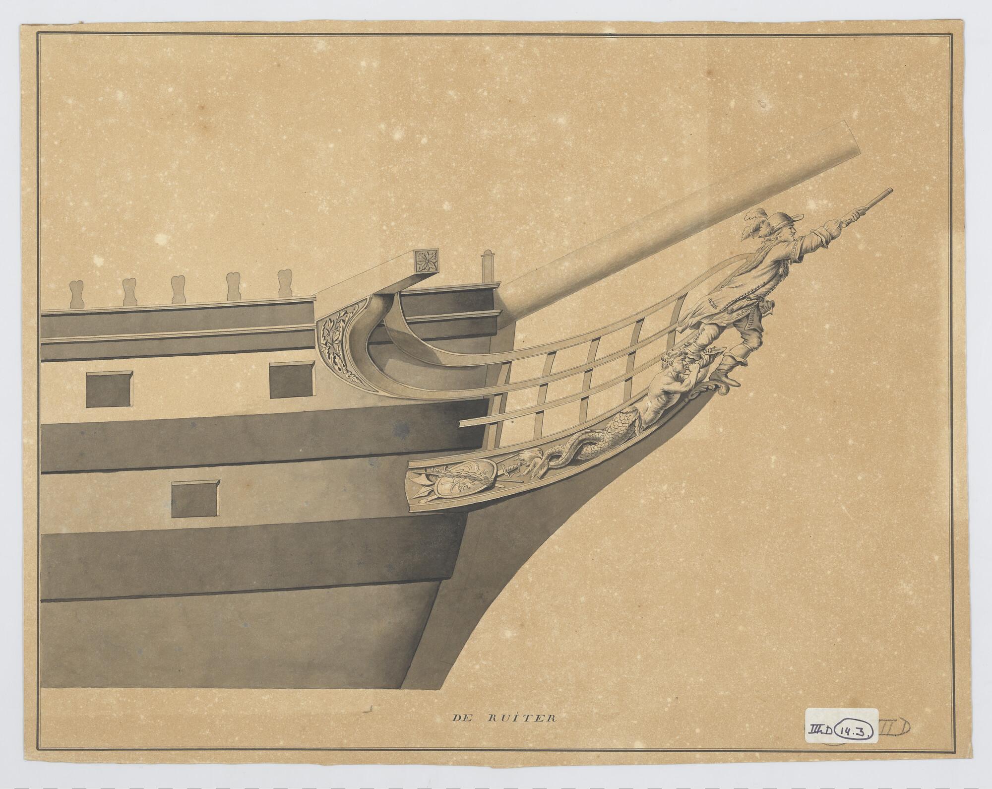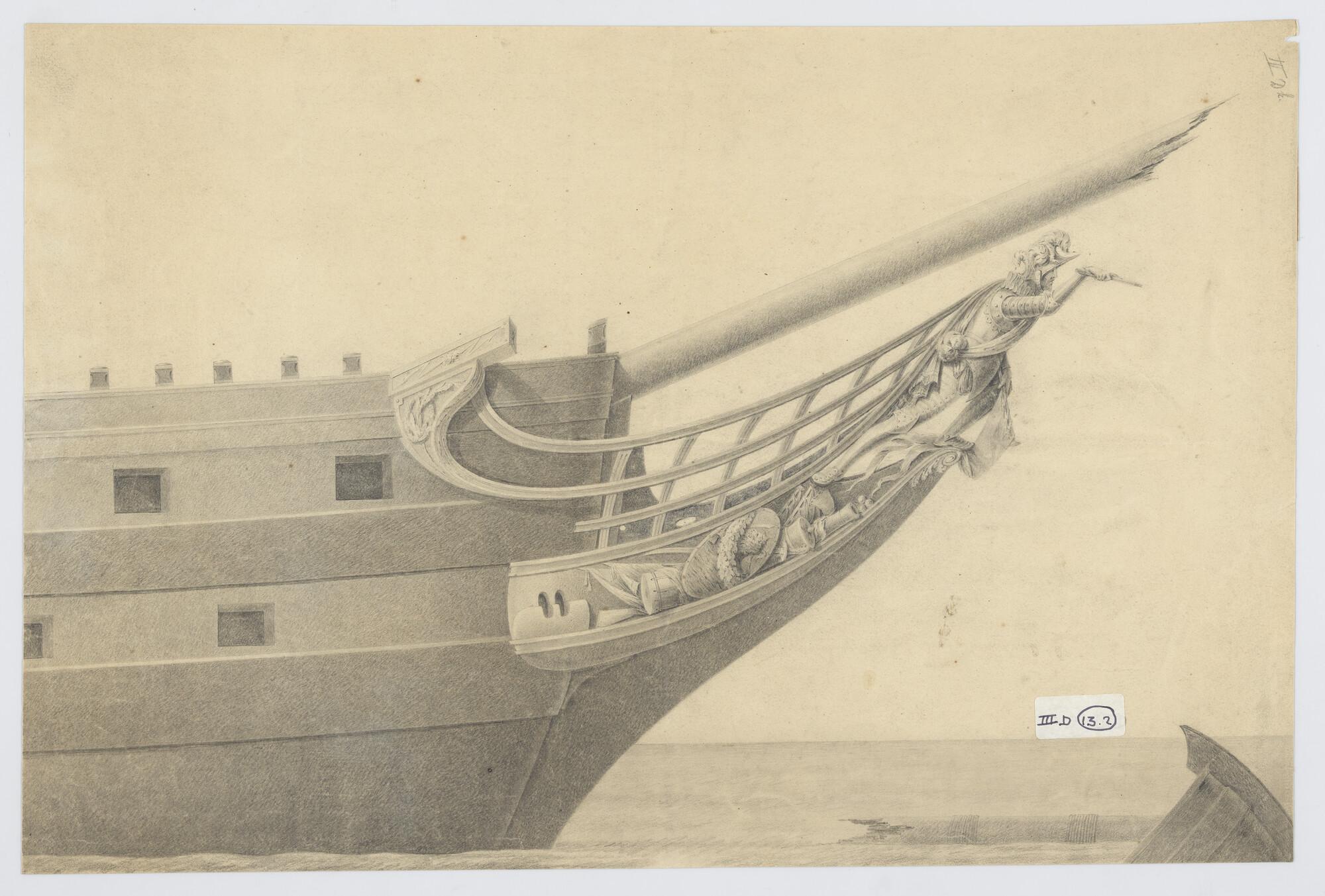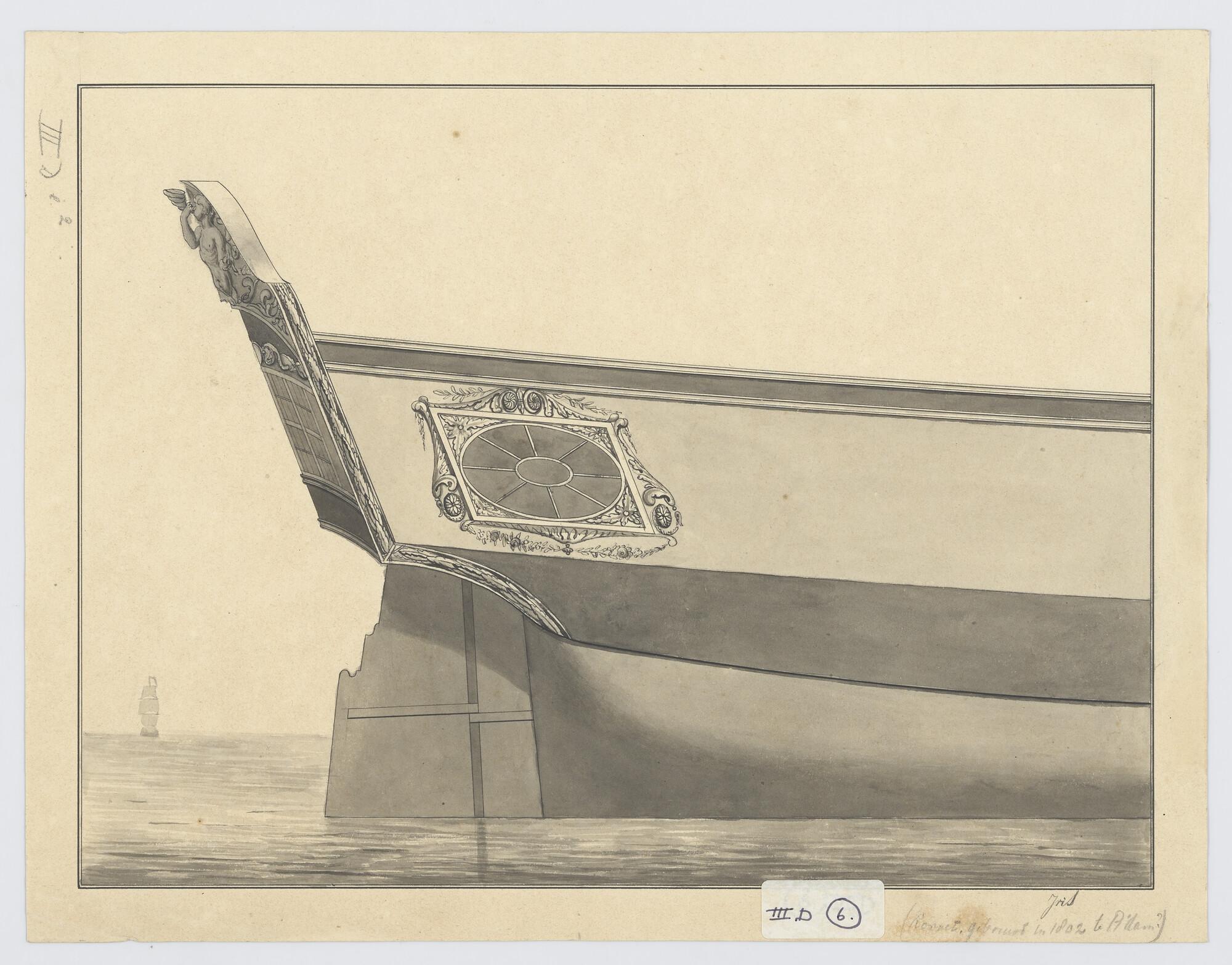 Voorschip met schegversiering van het fregatschip 'H...