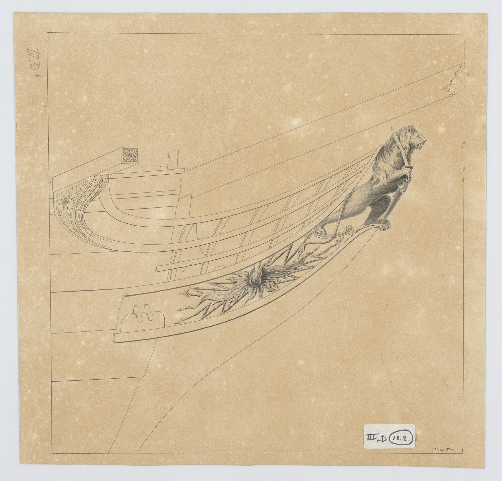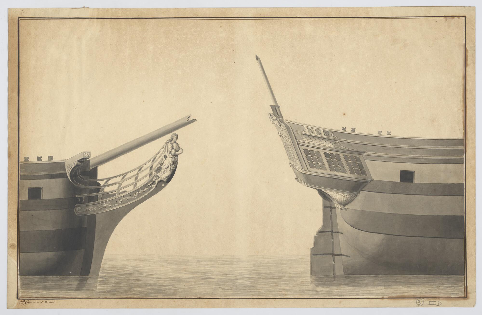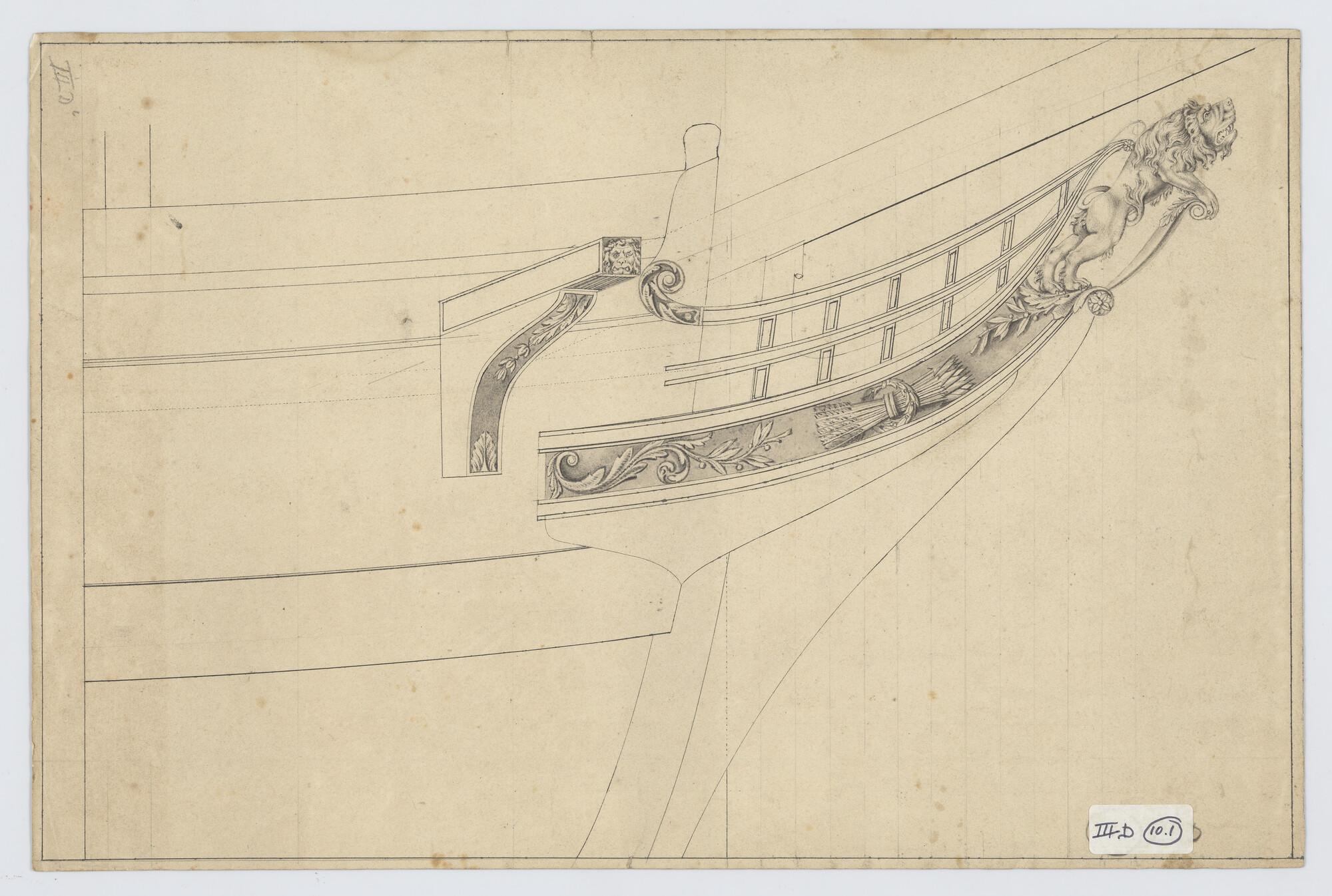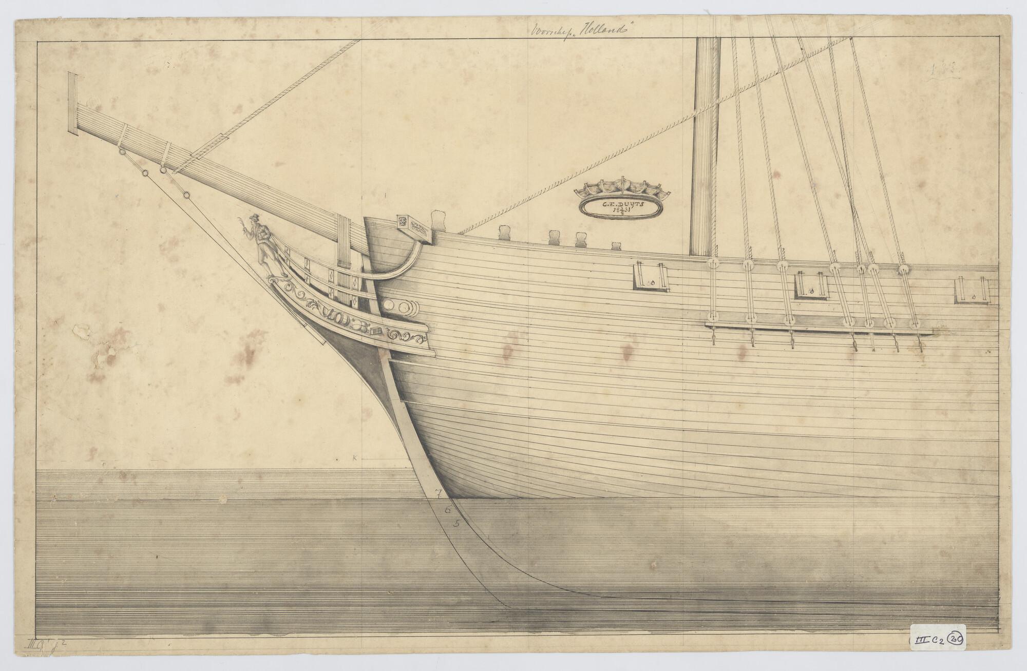 Voorschip met schegversiering van het fregatschip 'H...