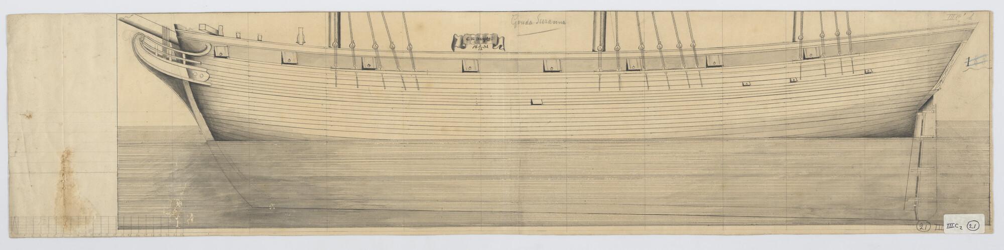 Lijnenplan van de galjoot 'Nicolaas Witsen'