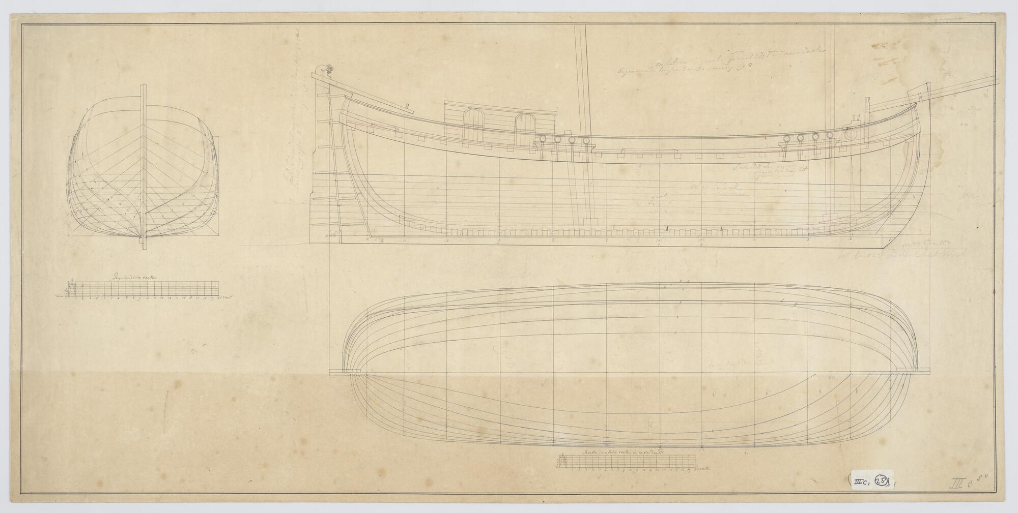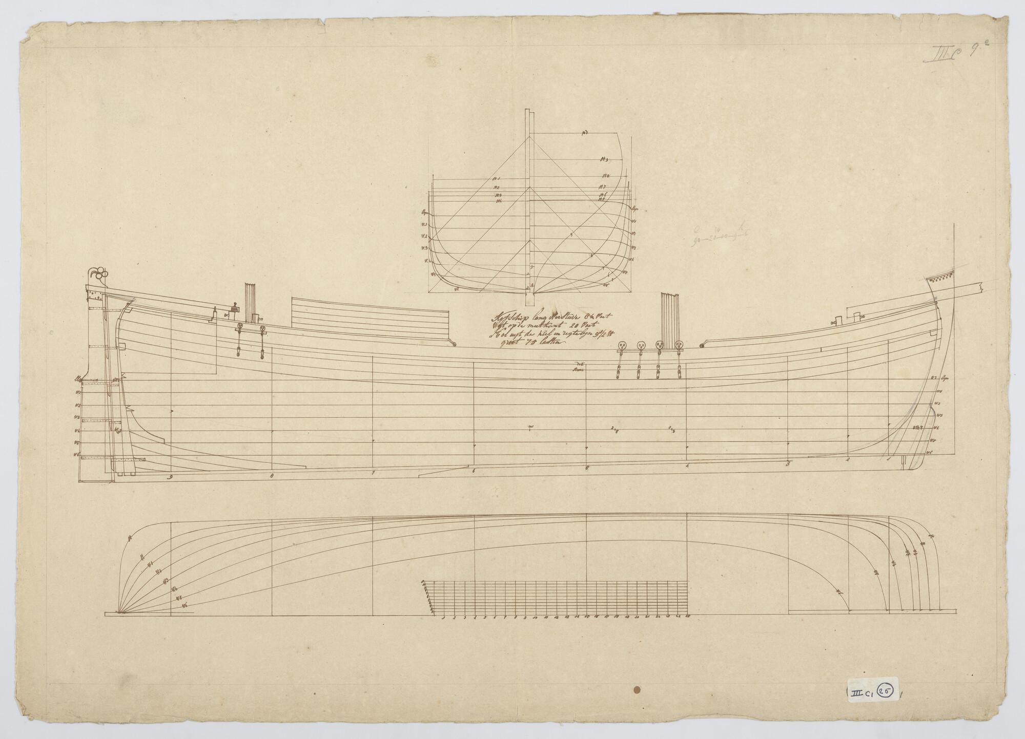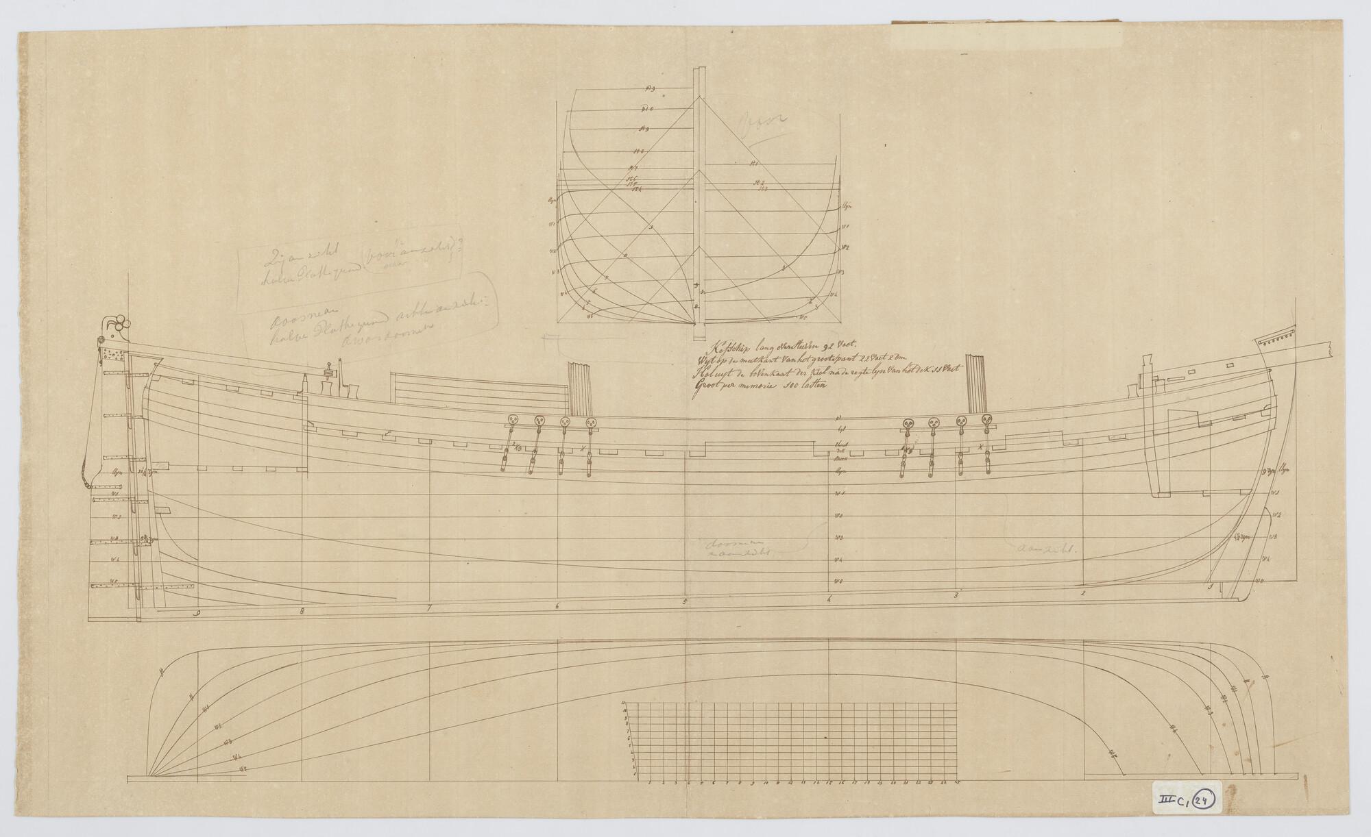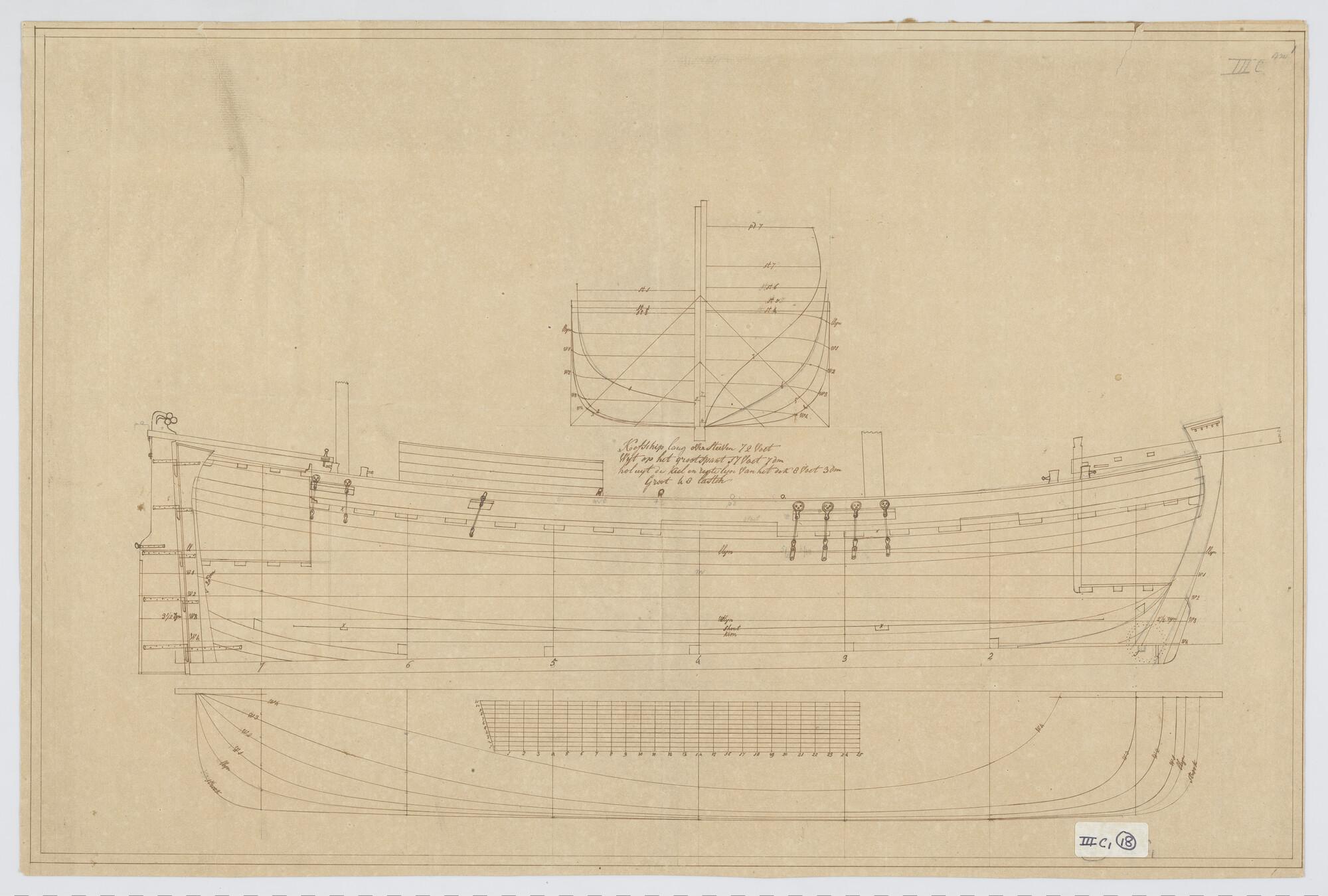 Lijnenplan van een driemast kofschip
