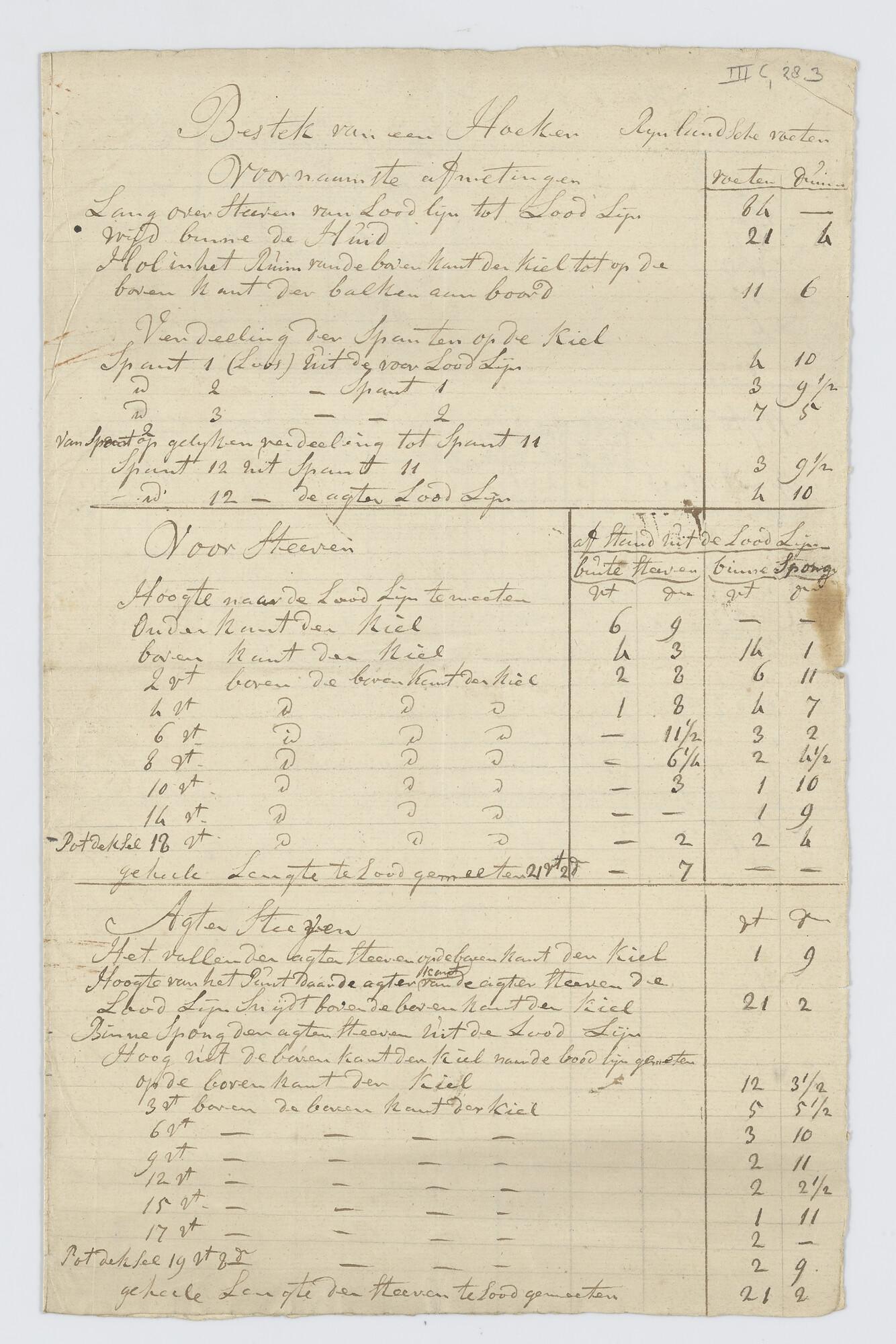 Lijnenplan van een hoeker