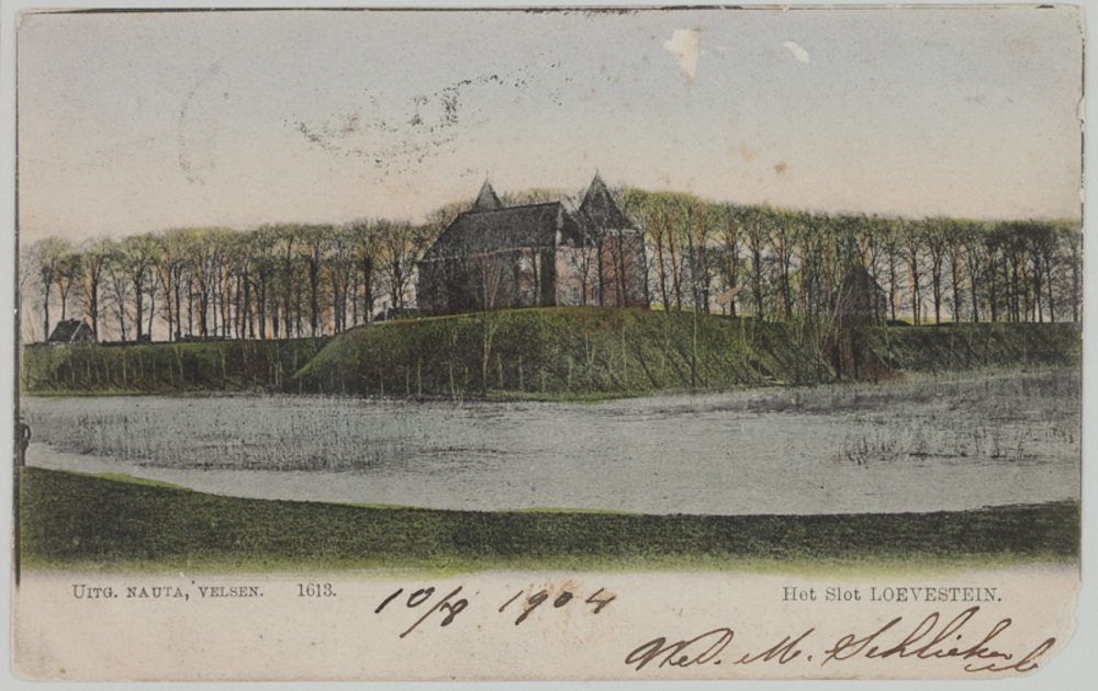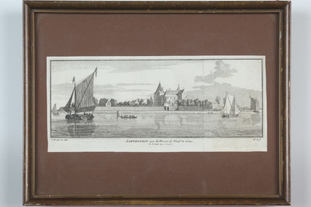 Loevestein vanuit het noorden, kopergravure, 18e eeuw