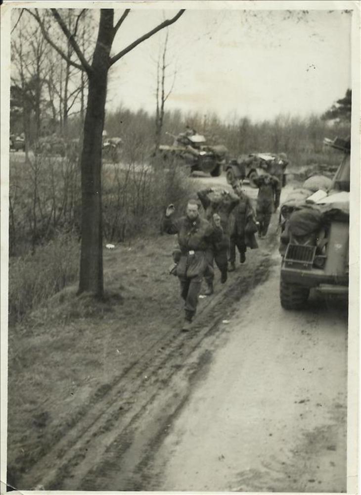 Geallieerde militairen voeren Duitse krijgsgevangene...
