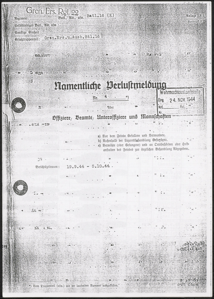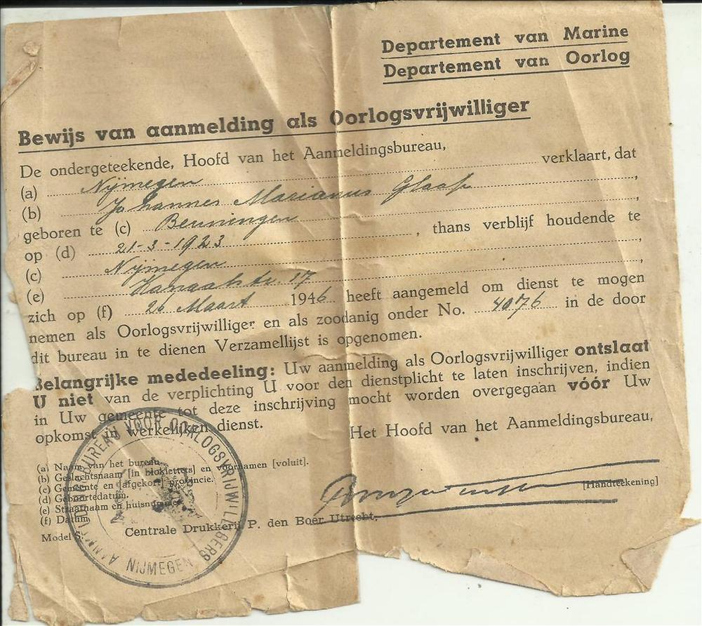 Bewijs van aanmelding als Oorlogsvrijwilliger