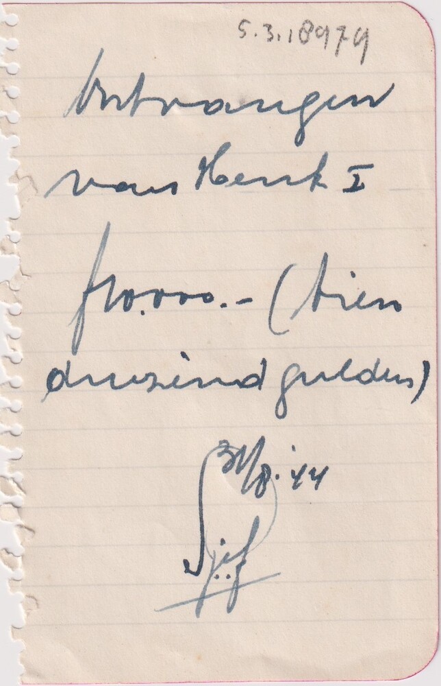 Velletje papier met tekst: "Ontvangen van Henk I f 1...
