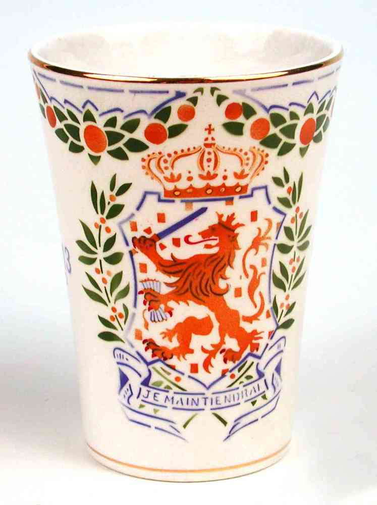 Herinneringsbeker van keramiek met afbeelding Nederl...
