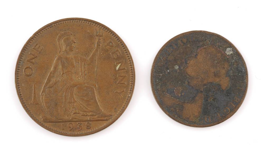 twee munten: 1 en half penny