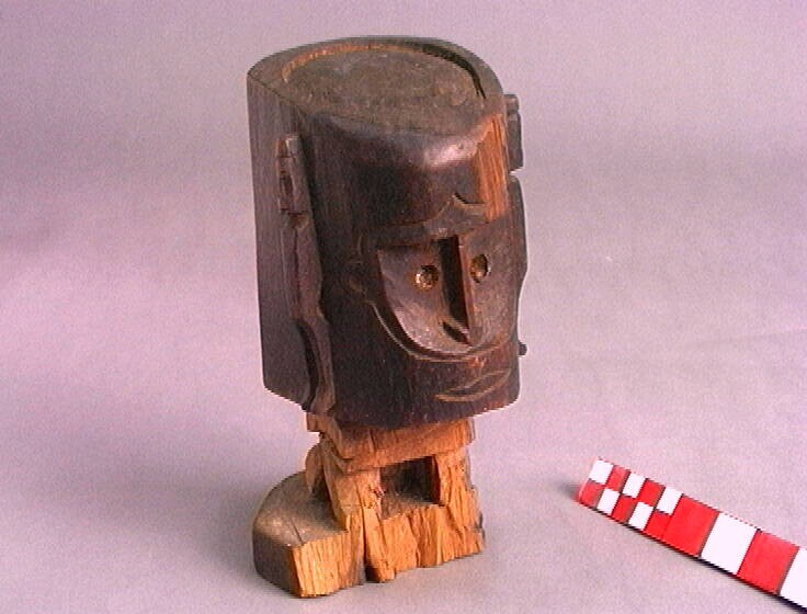 Neksteun, versierd met twee liggende menselijke figu...