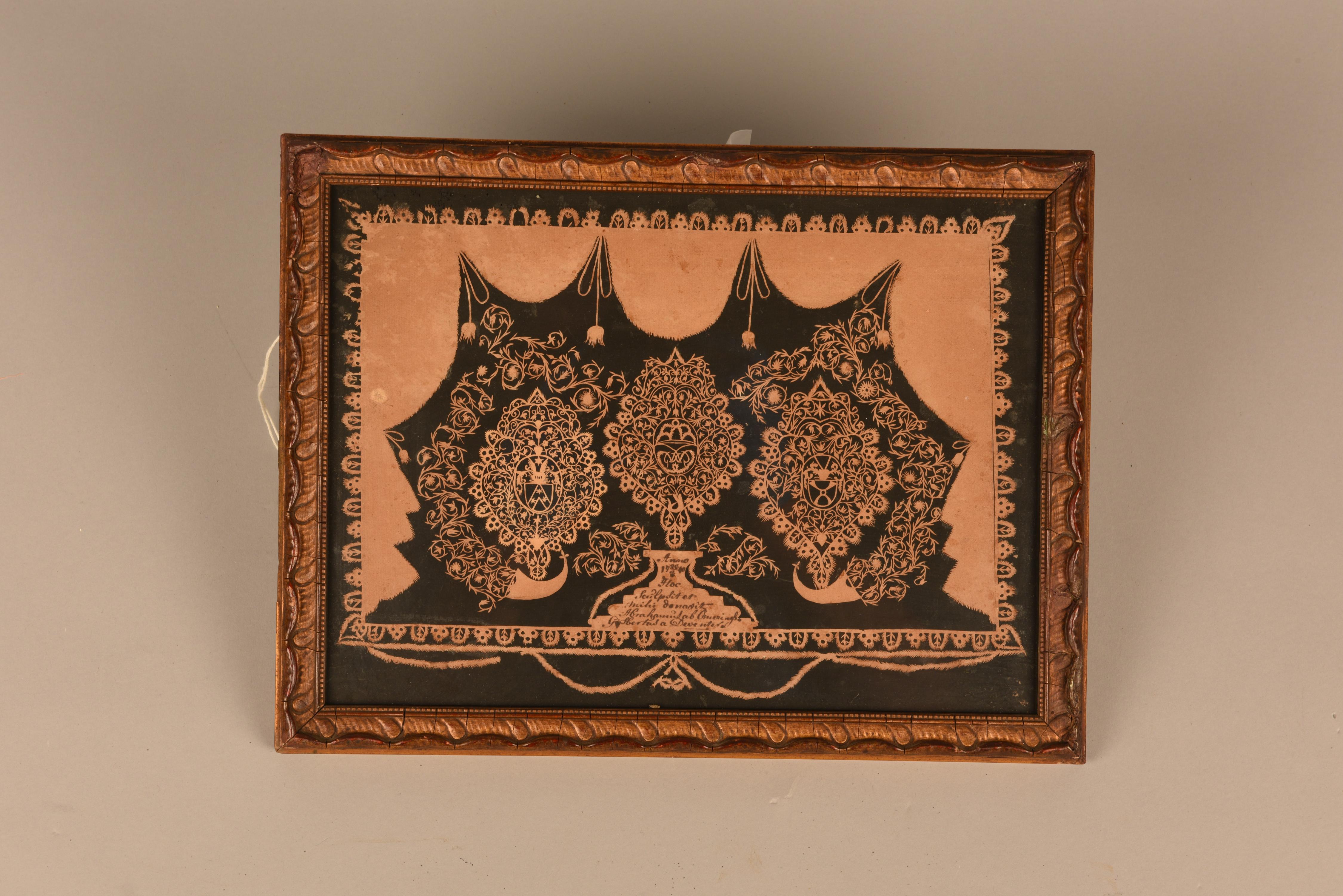Geknipte trompe-l'oeil van een spiegelmonogram en tw...