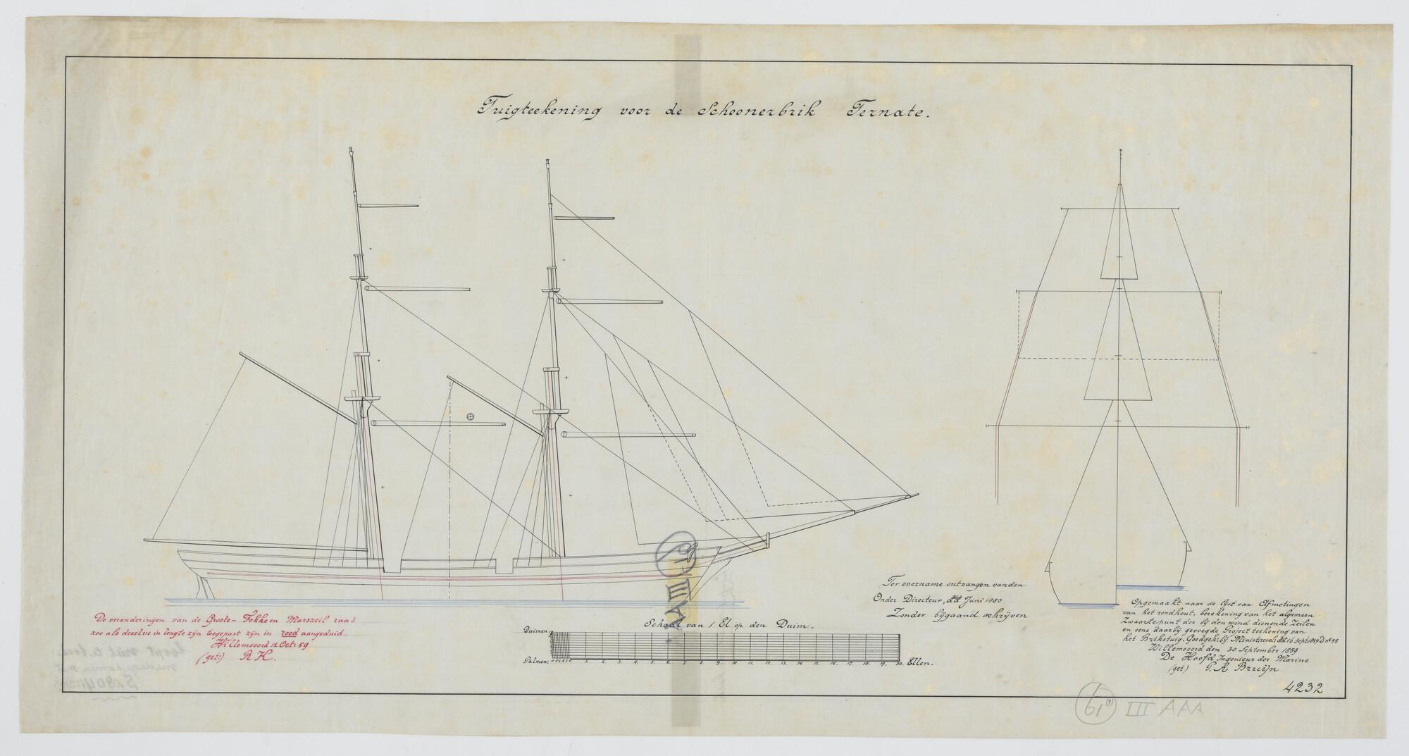 Tuigplan van de schoenerbrik Zr.Ms. 'Ternate' 1841