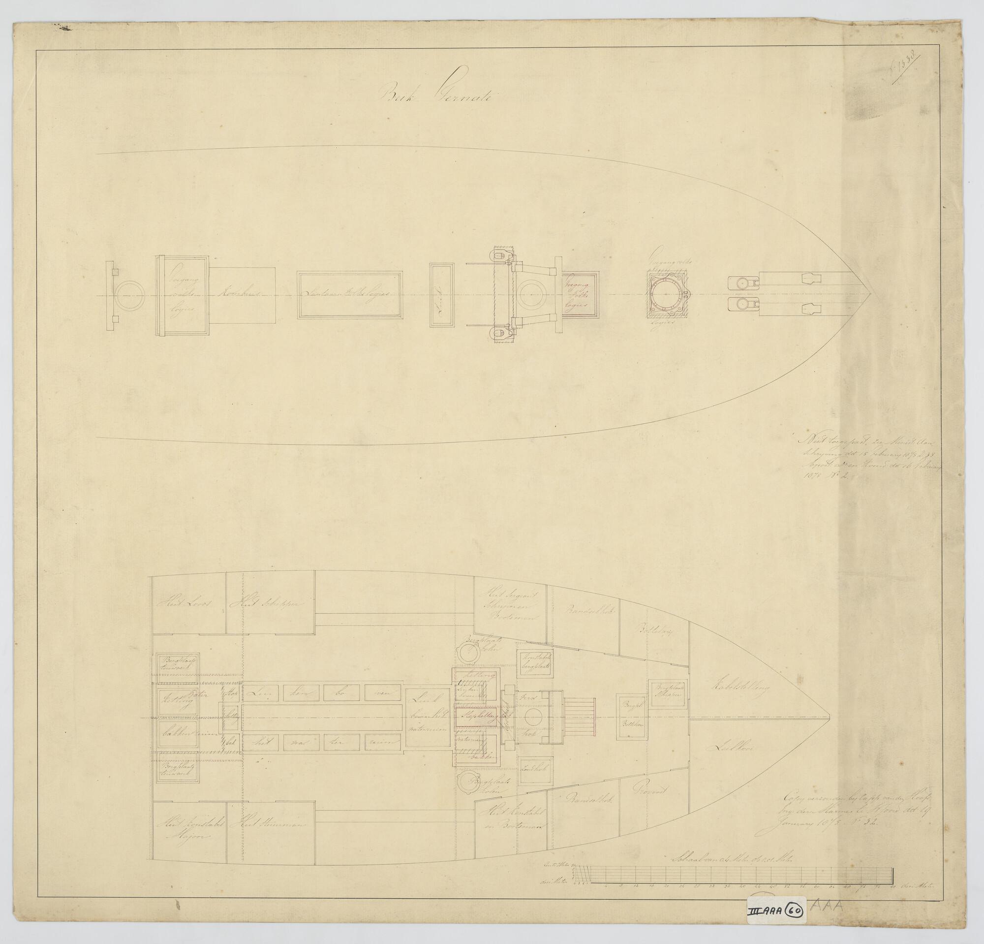 Indeling bak en voorschip van de schoenerbrik Zr.Ms....