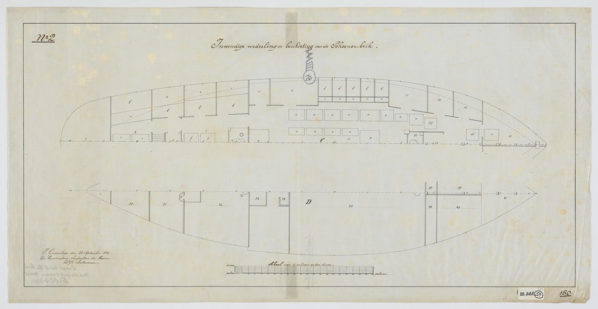 Inrichtingsplan van de schoenerbrik Zr.Ms. 'Dolfijn'