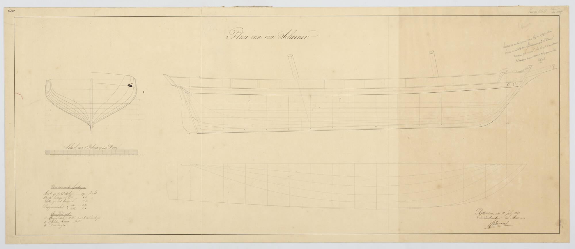 Algemeen plan van de schoenerbrik Zr.Ms. 'Dolfijn' v...