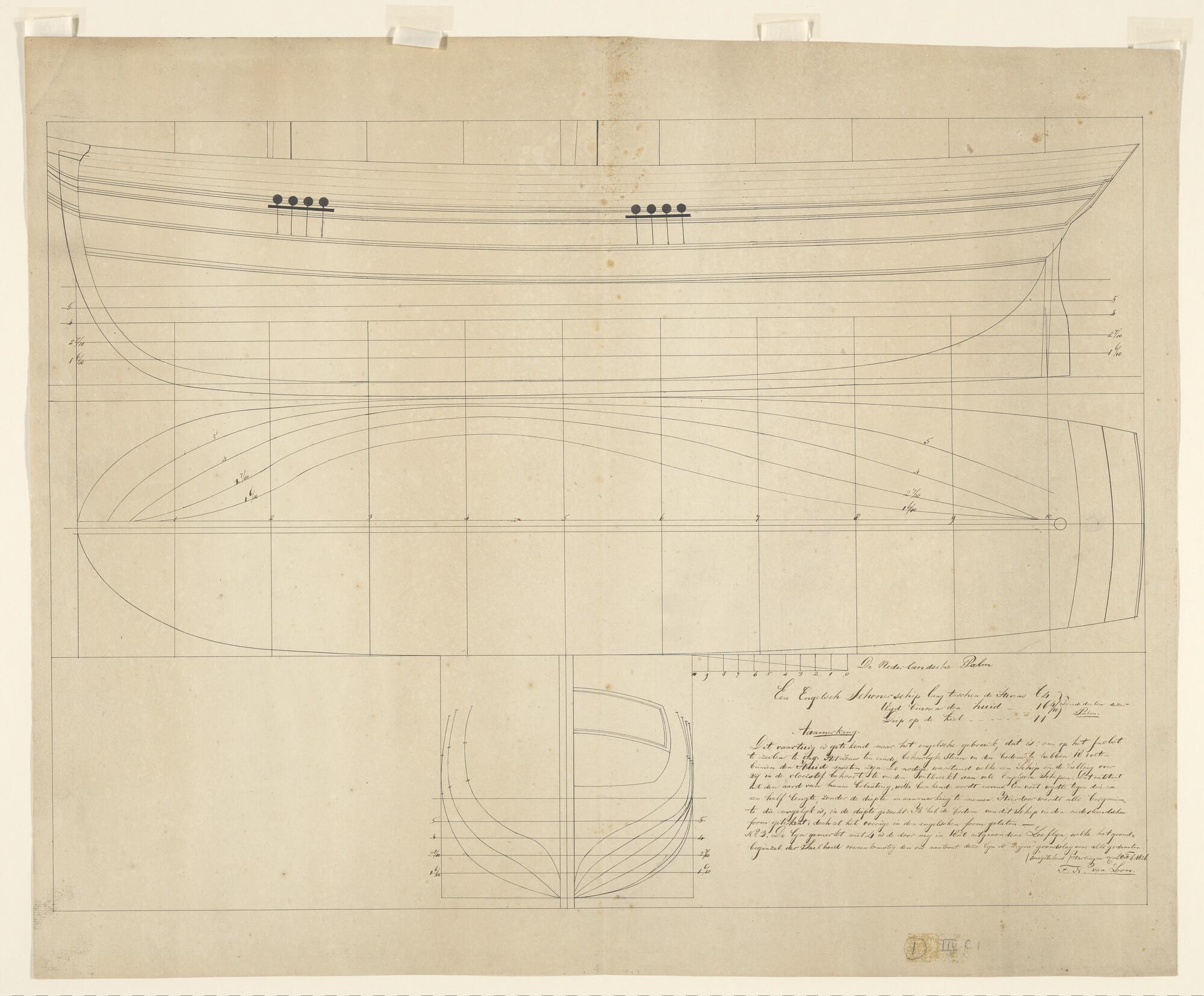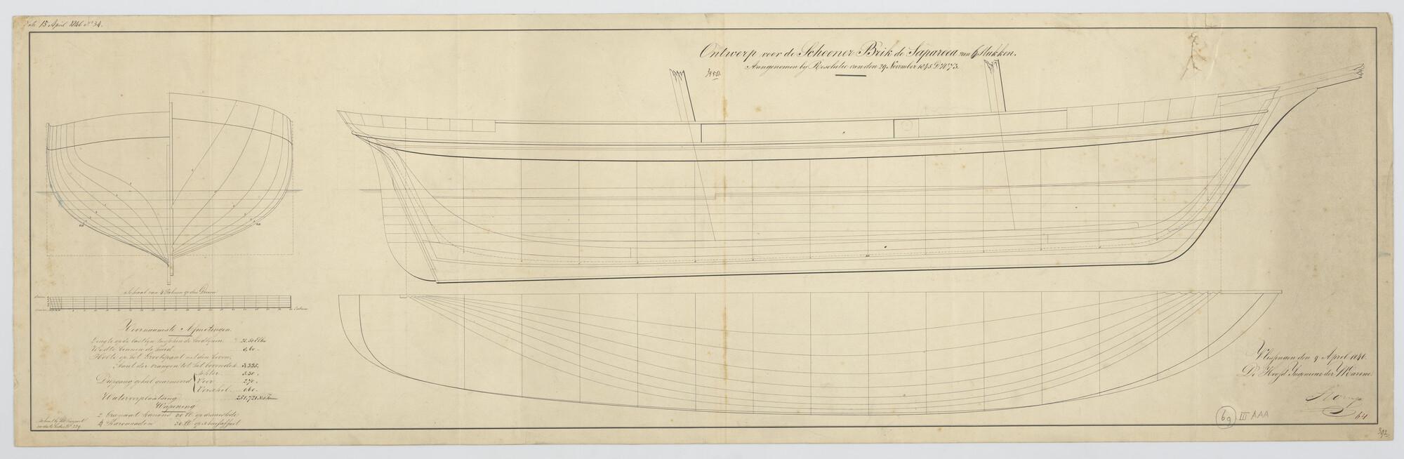Lijnenplan van de schoenerbrik Zr.Ms. 'Saparoea' van...