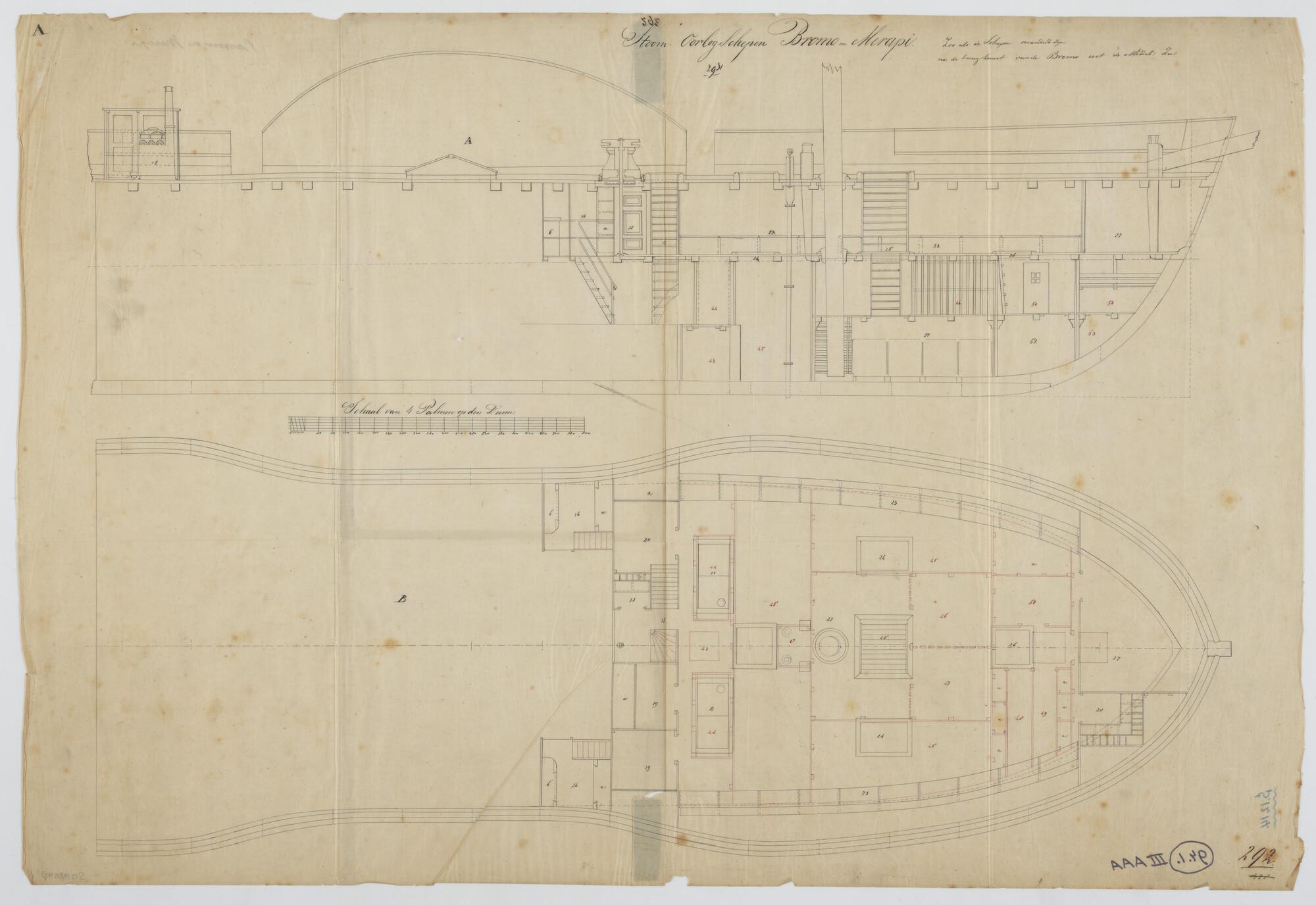 Lijnenplan van de raderstoomschepen Zr.Ms. Bromo en ...