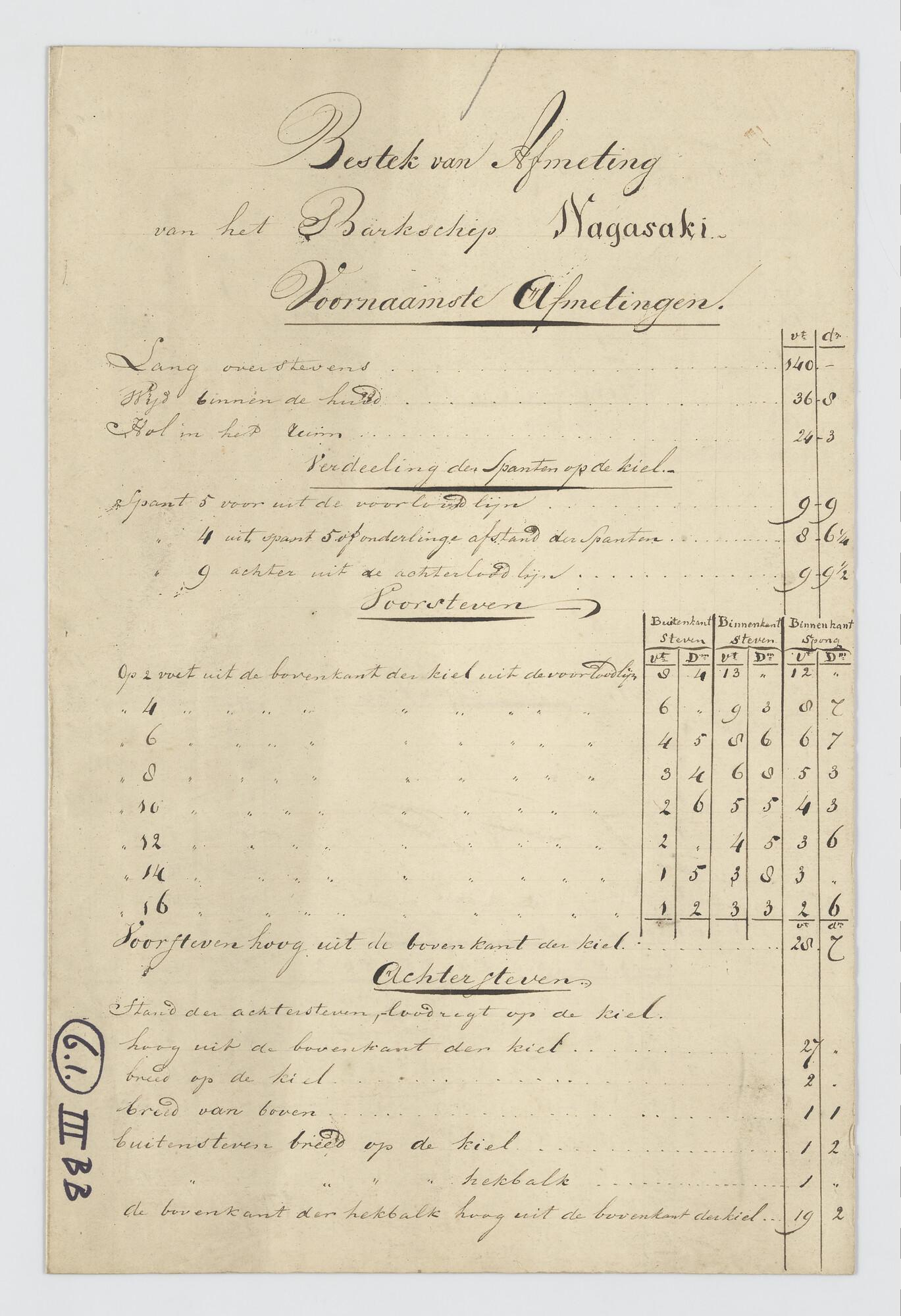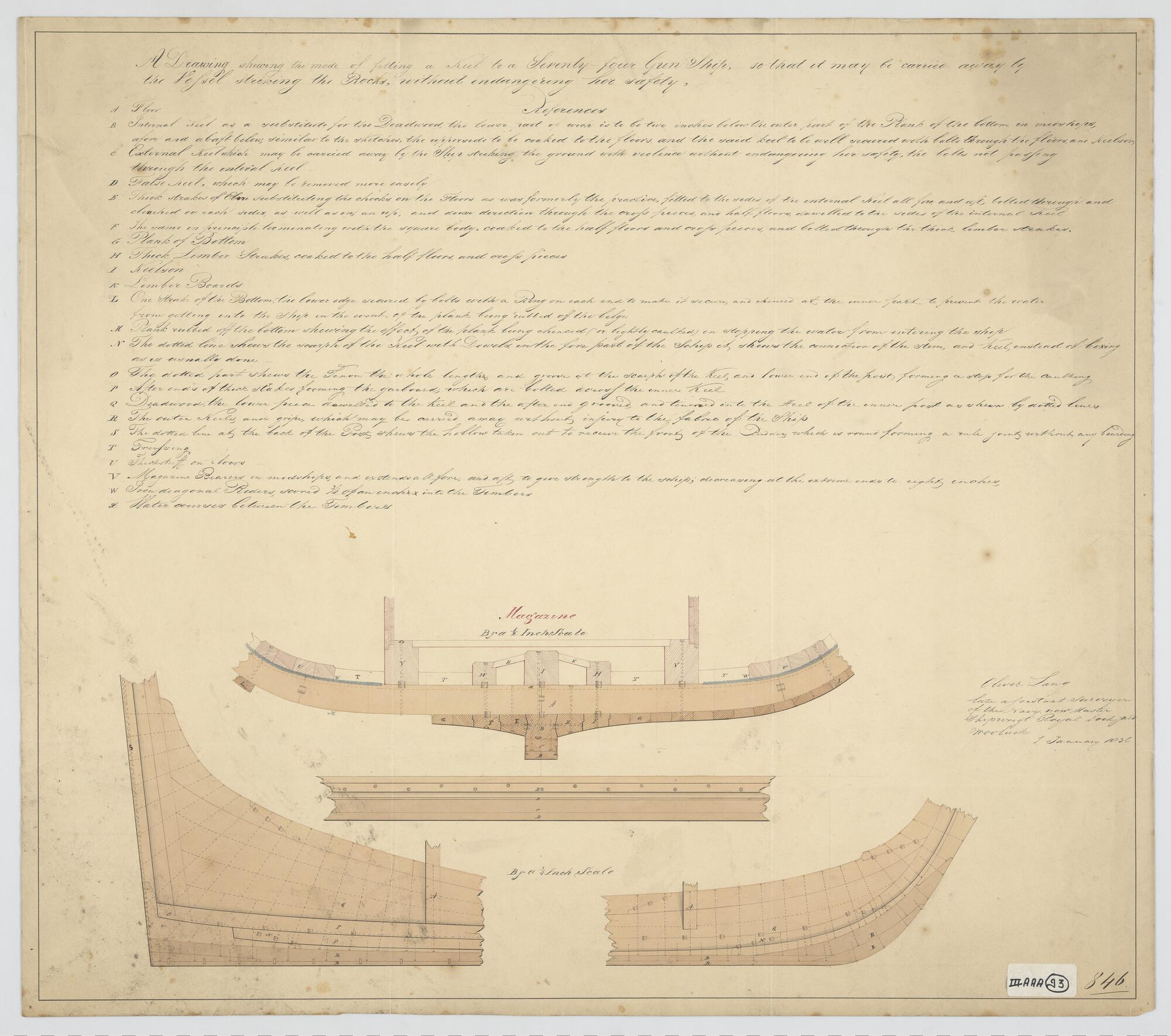 Constructietekening van de kiel van een oorlogsschip...