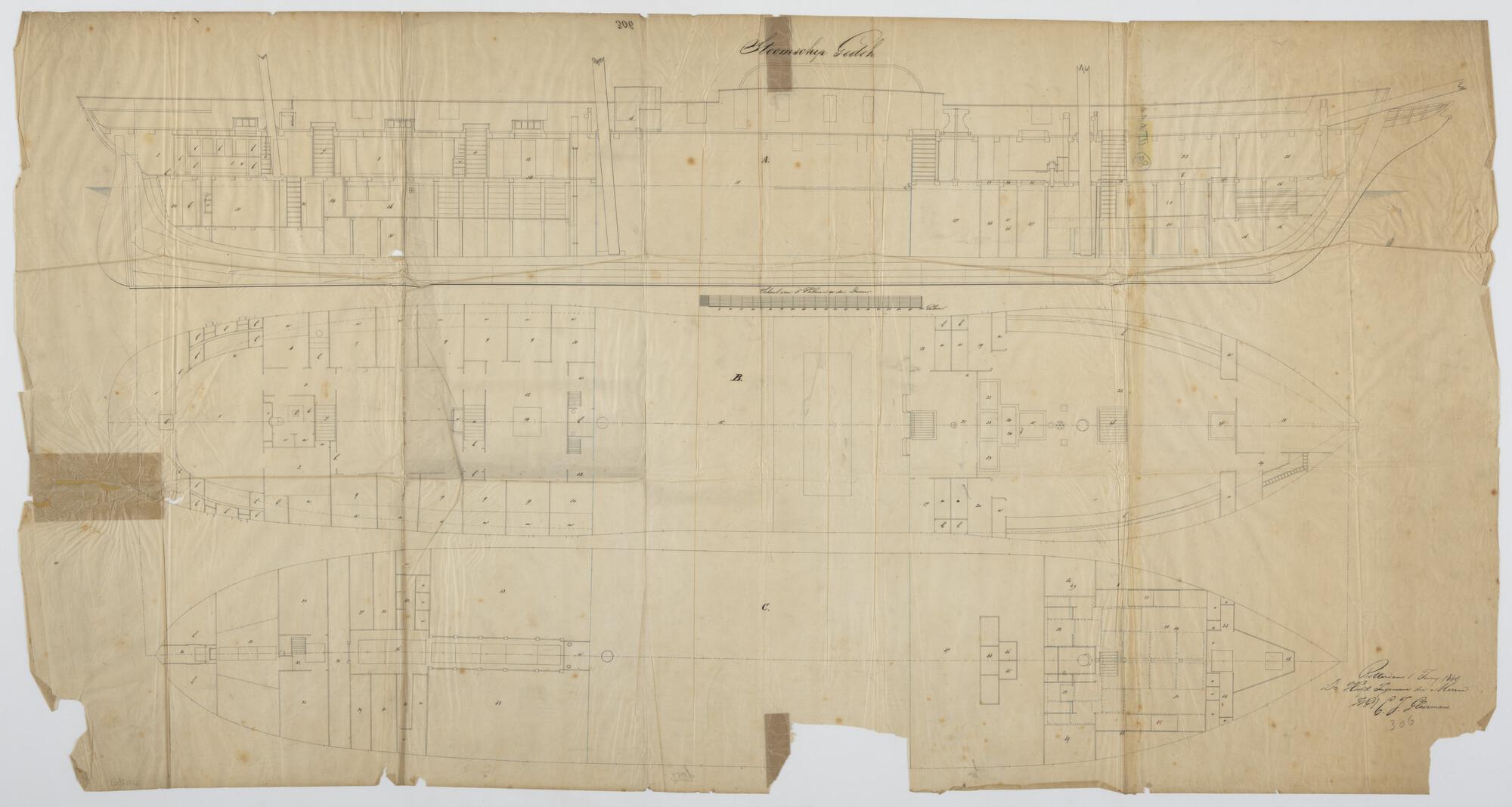 Inrichtingsplan van het raderstoomschip Zr.Ms. 'Gedeh'