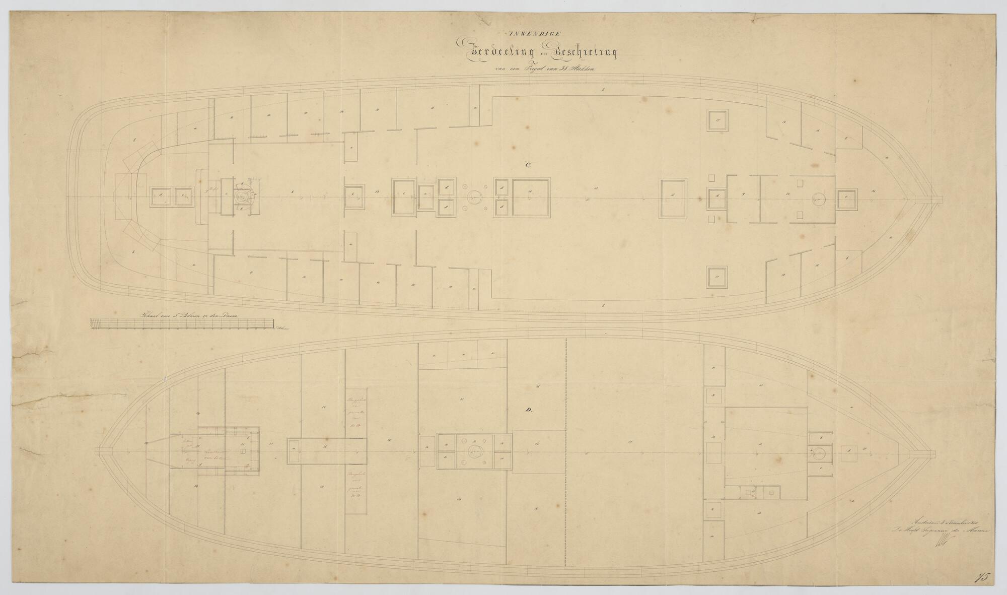Inrichitngsplan van een fregat van 38 stukken