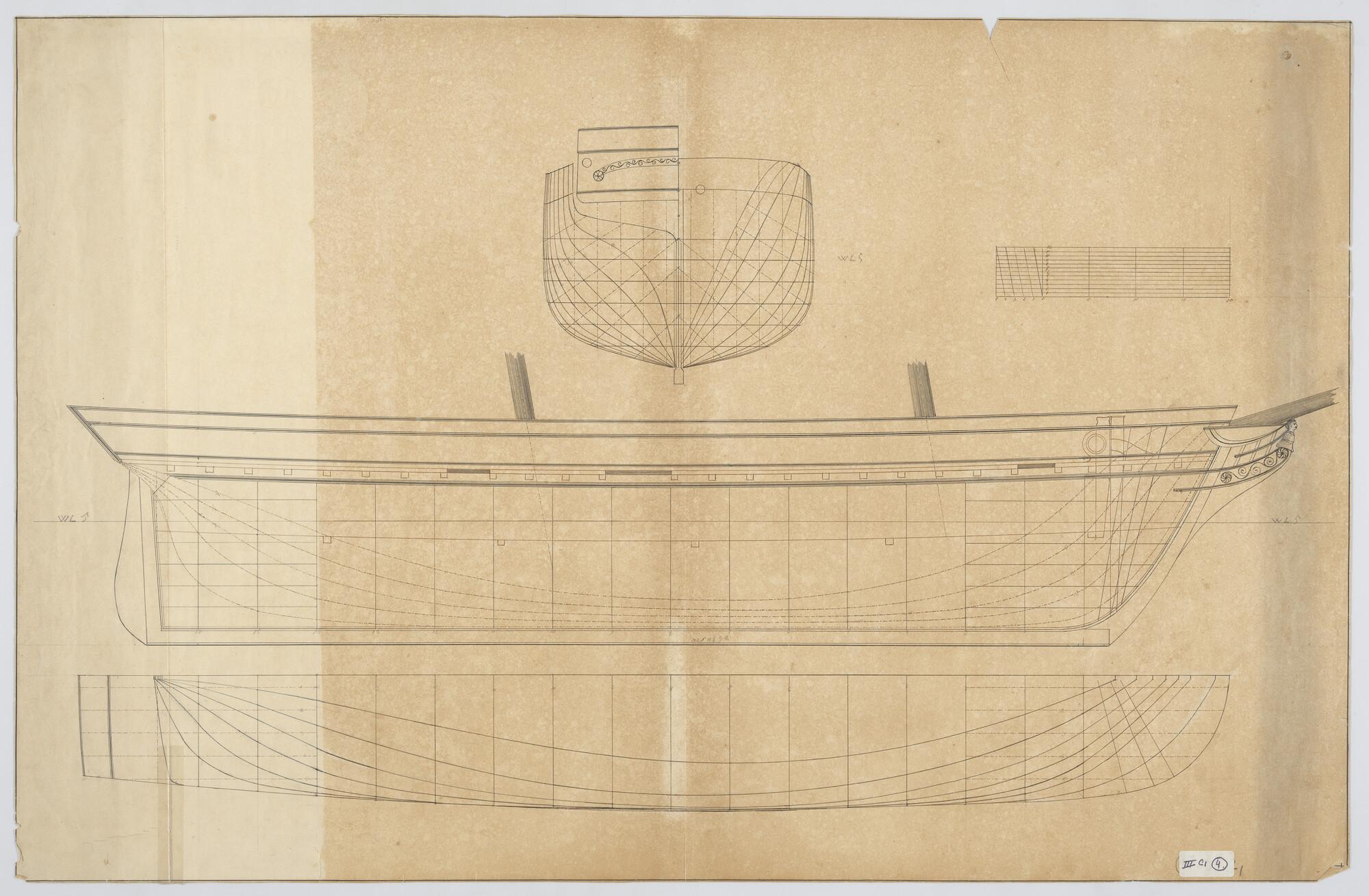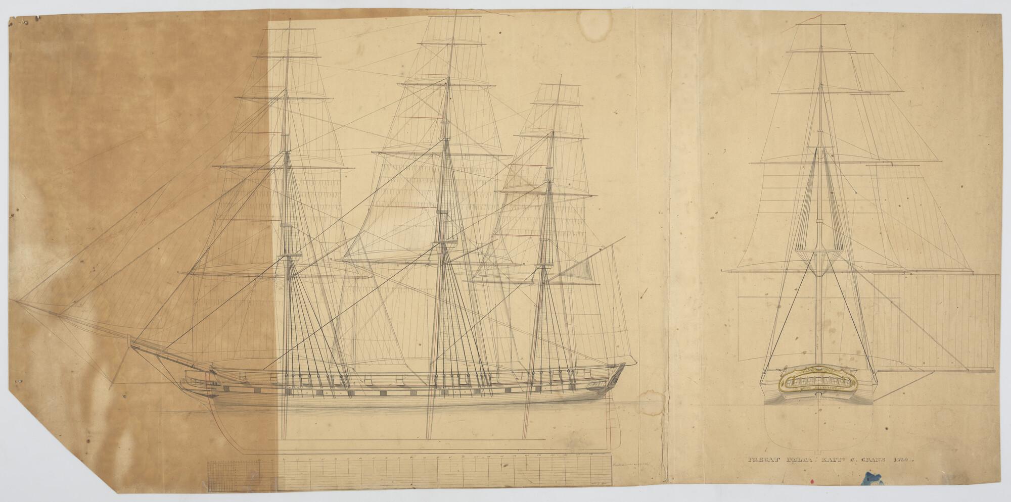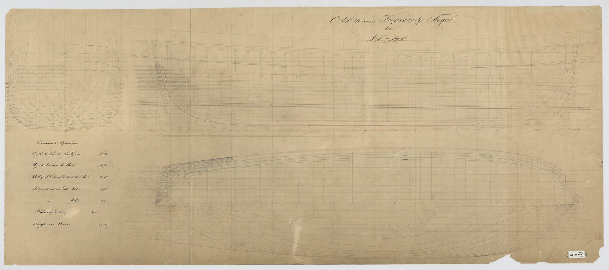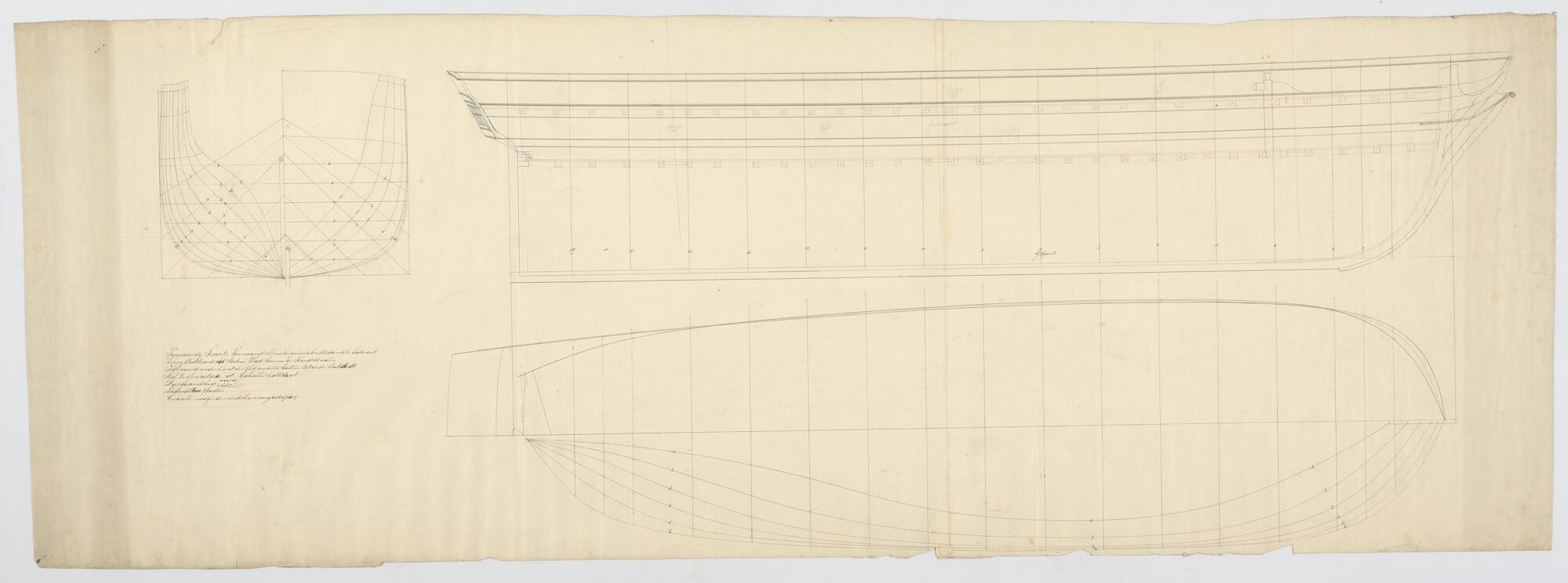 Lijnenplan van een van een koopvaardijfregat
