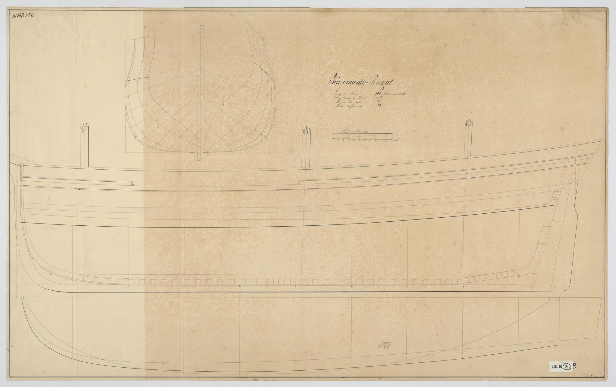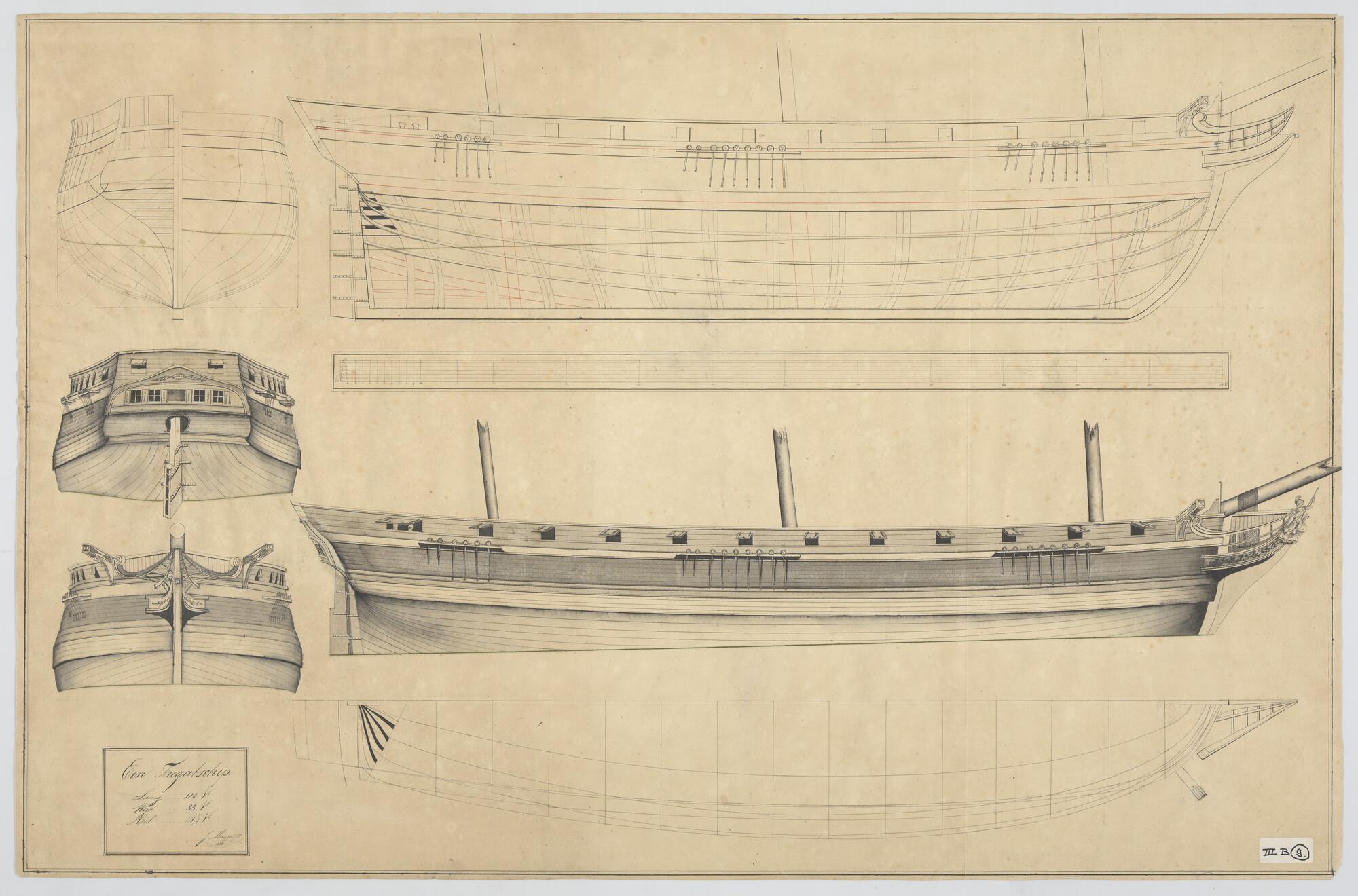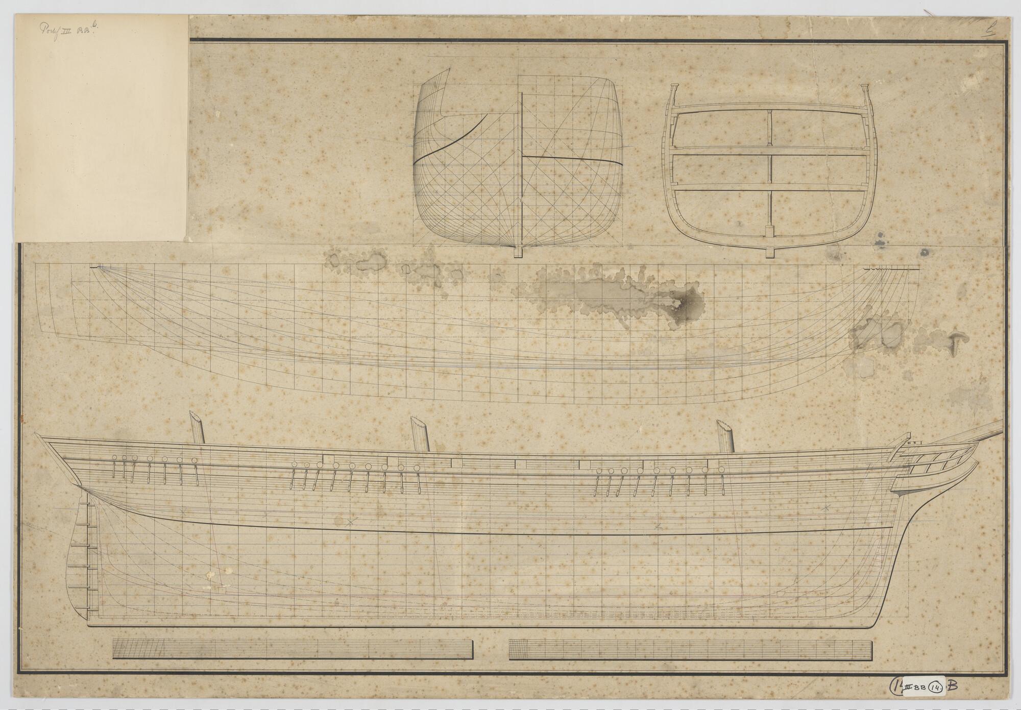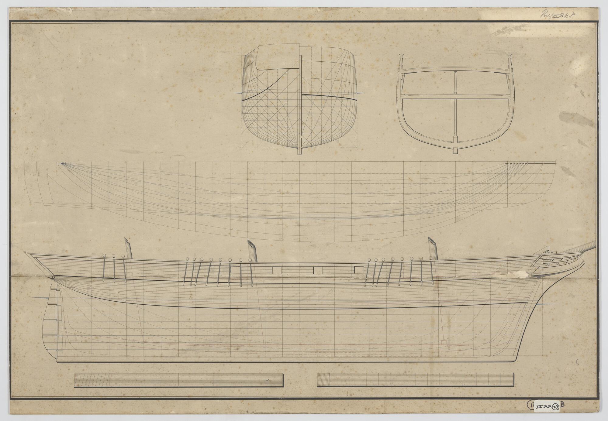 Lijnenplan van een van een koopvaardijfregat
