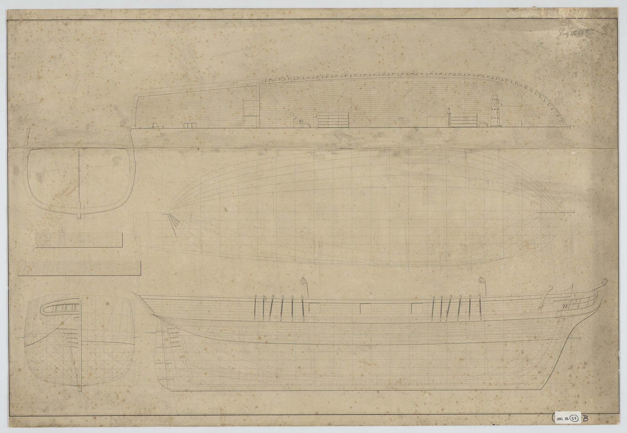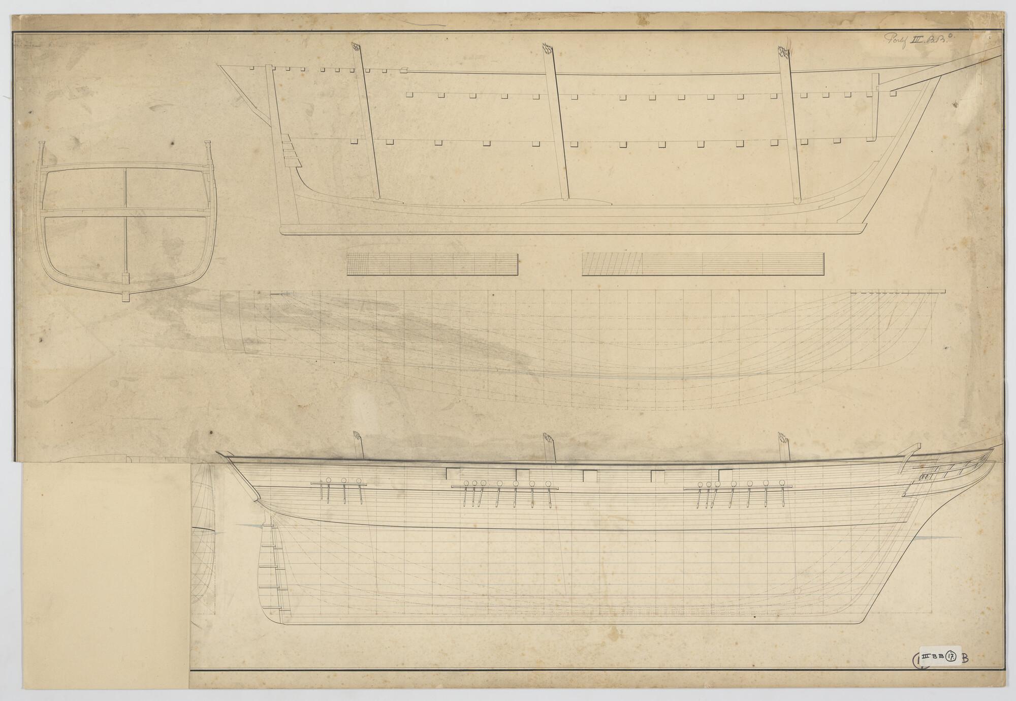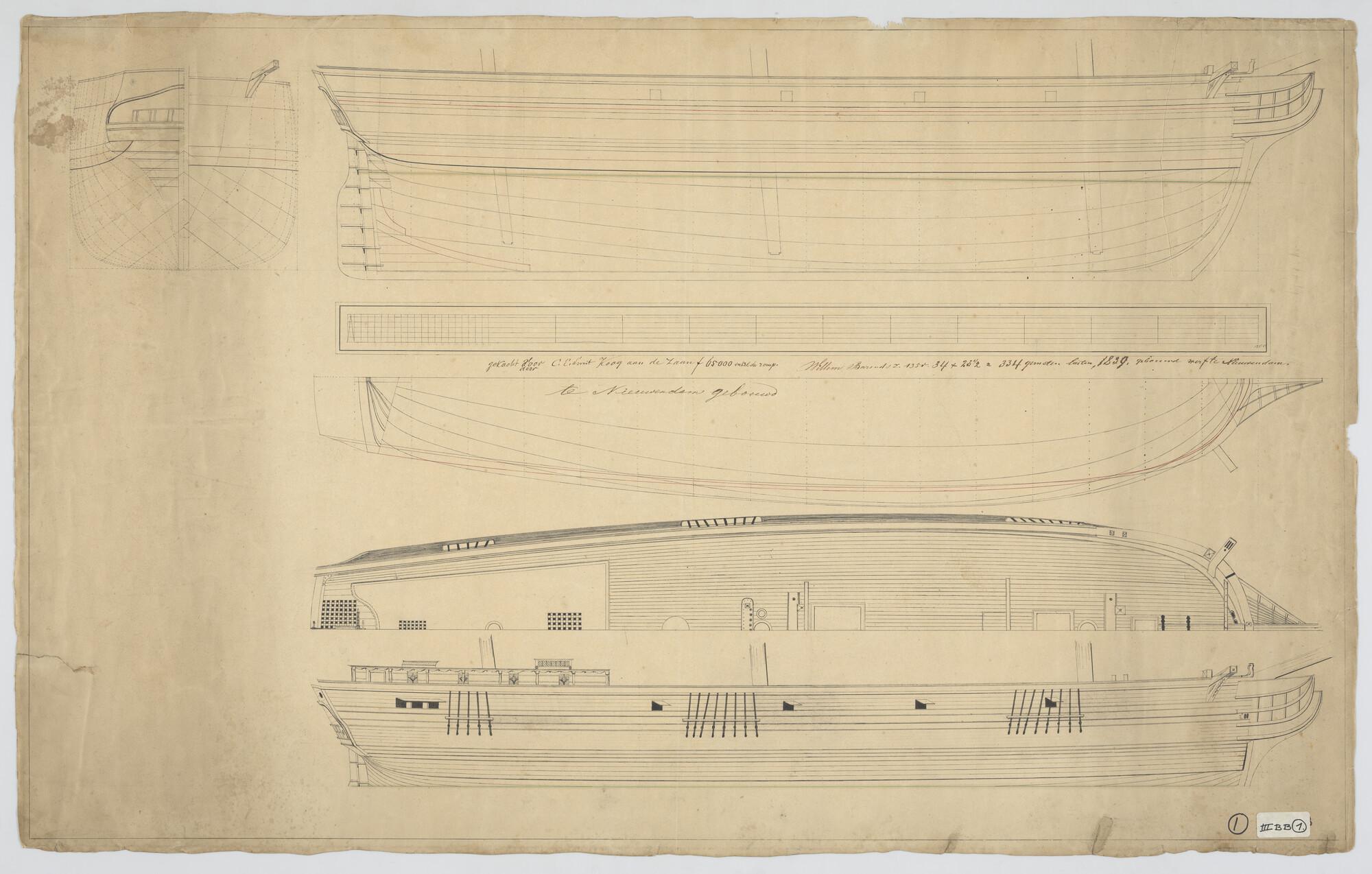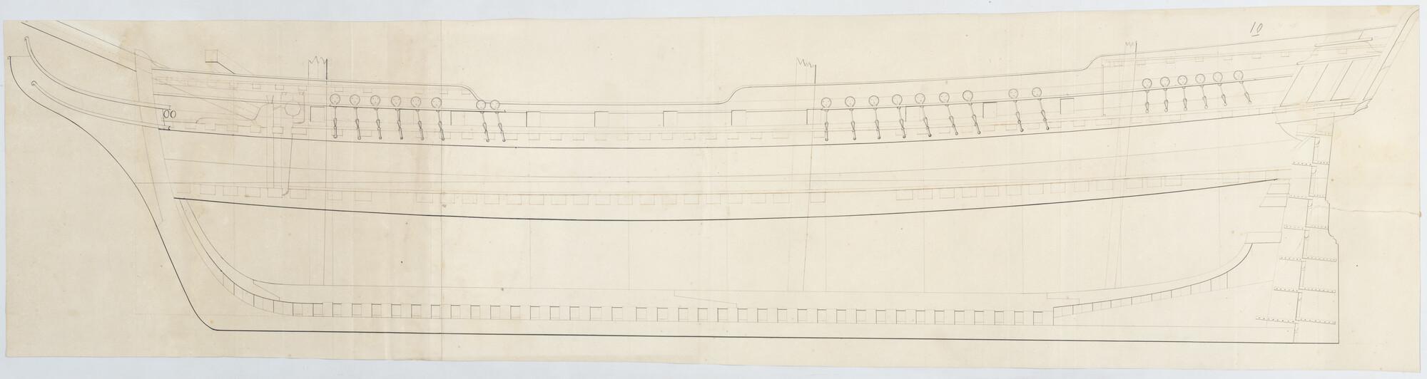 Lijnenplan van een van een koopvaardijfregat