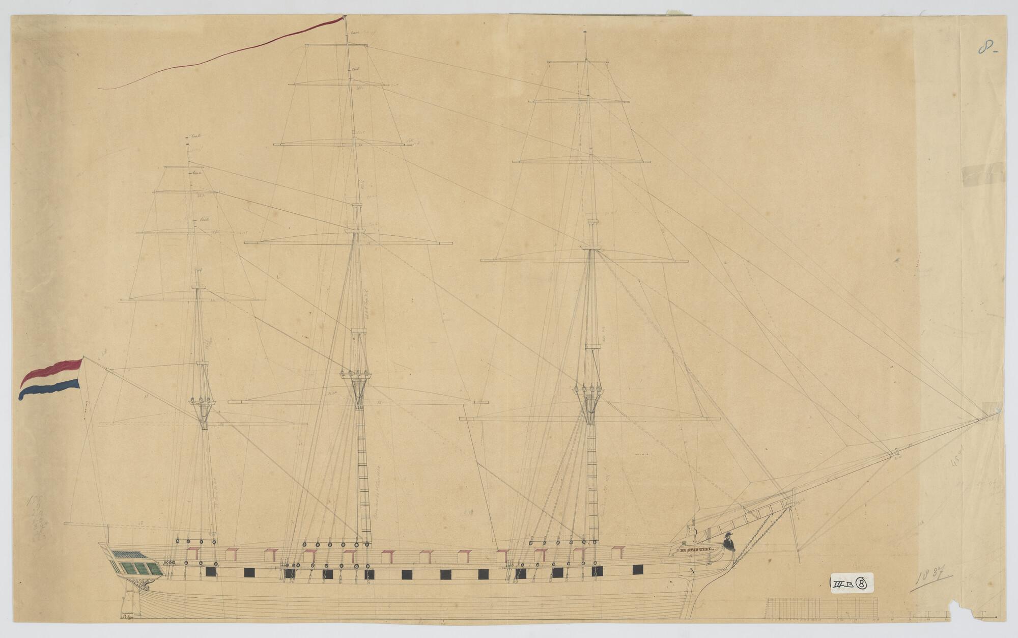 Tuig en zeilplan van het fregat van de stad Tiel