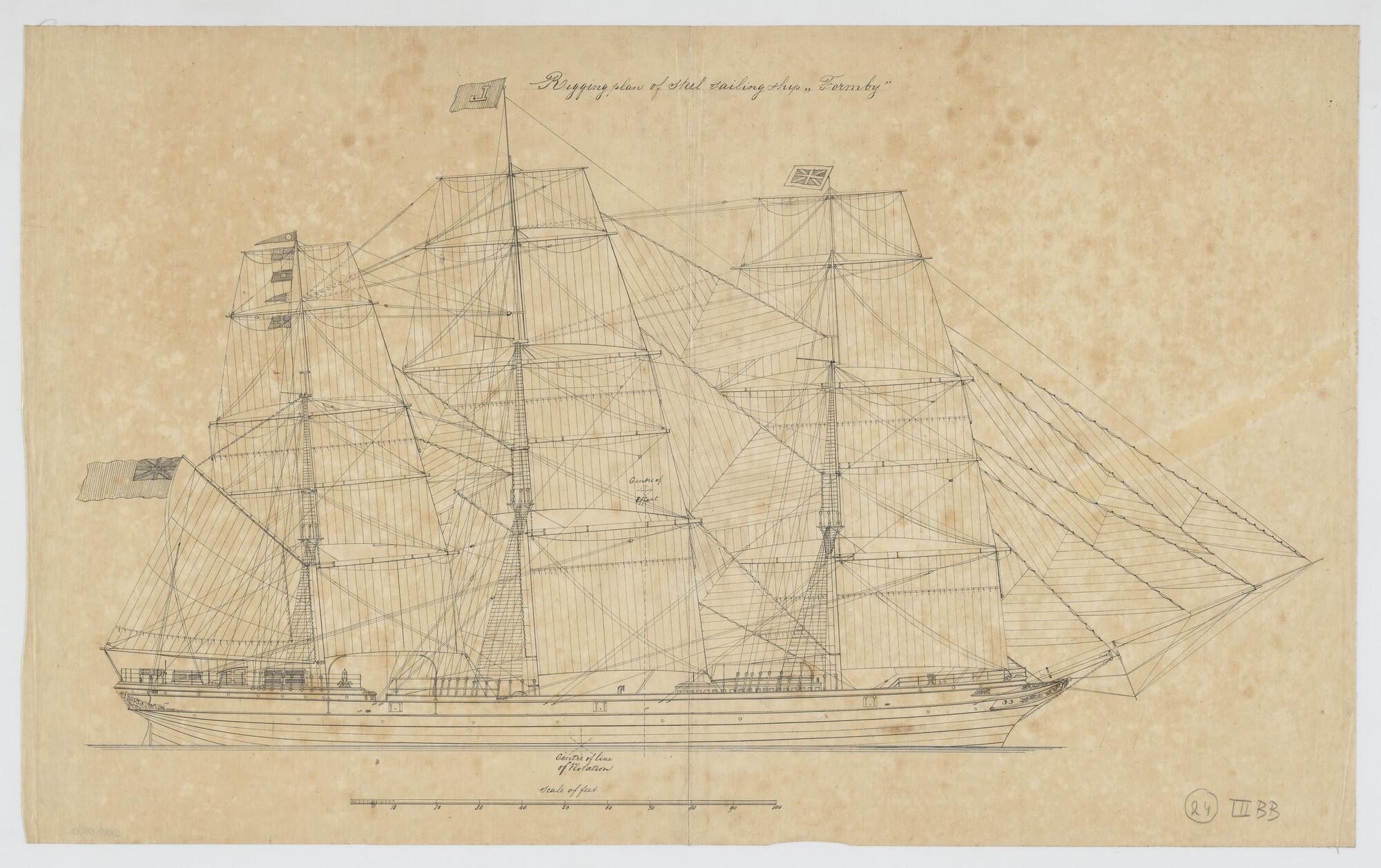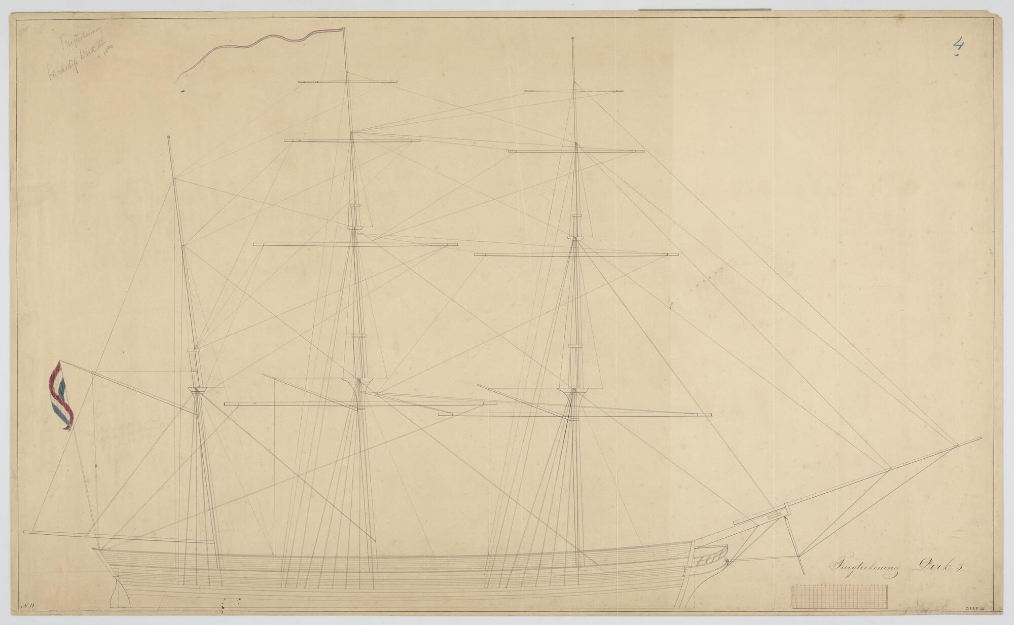 Tuigplan van het barkschip 'Dirk III'