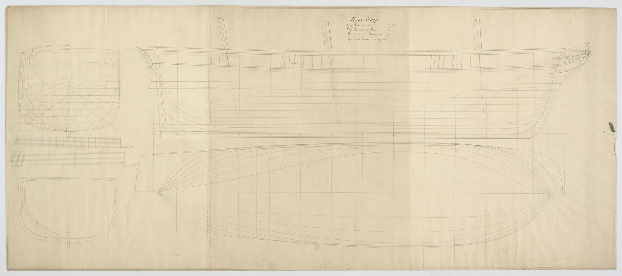 Lijnenplan van het barkschip 'Willem Barendsz'