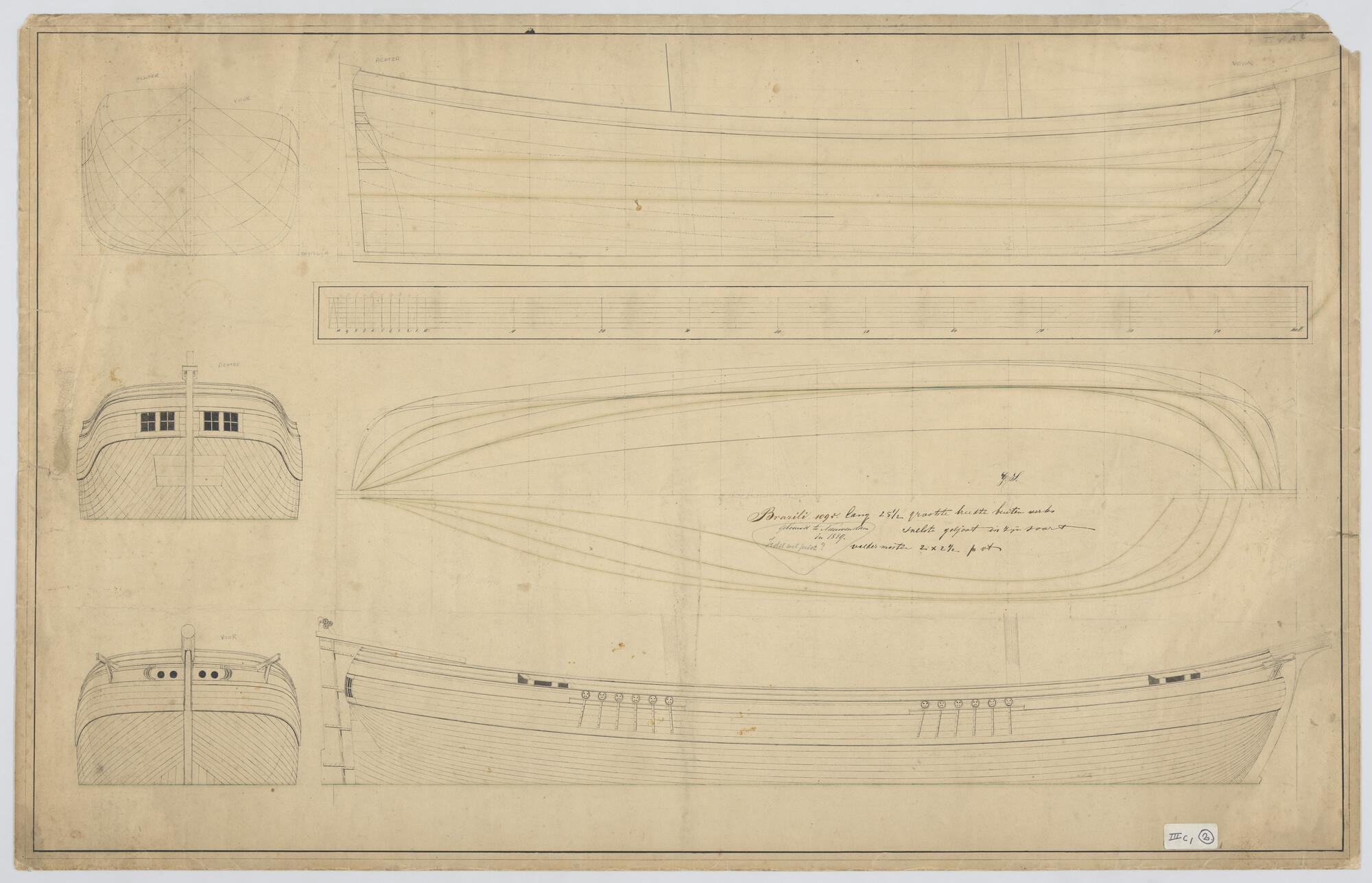 Lijnenplan van een brikschip