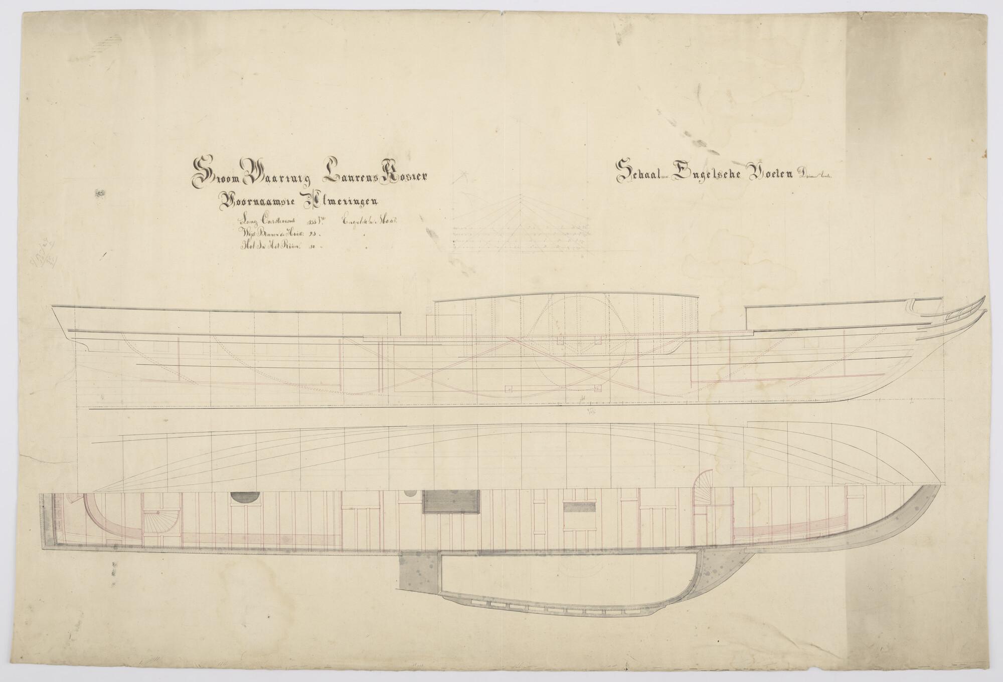 Lijnenplan van het raderstoomschip Laurens Koster