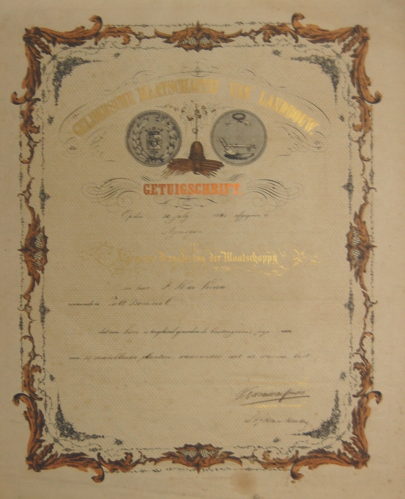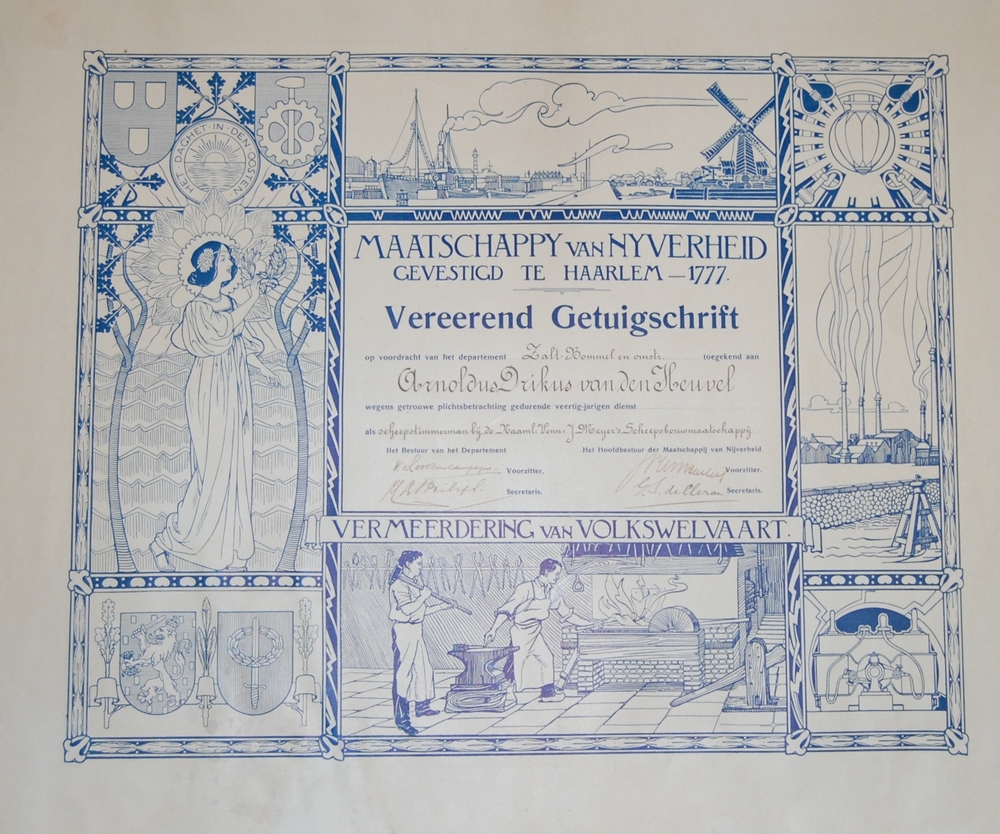 Getuigschrift Maatschappij van Nijverheid wegens 40 ...