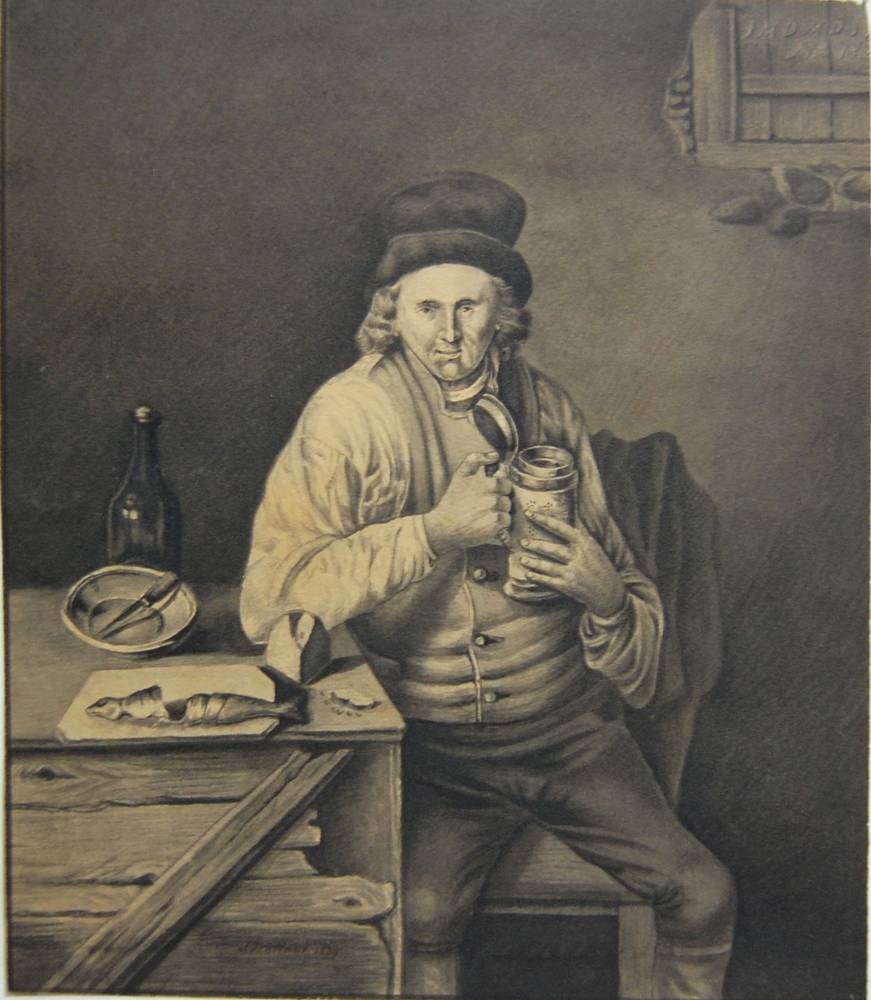 Centsprent, twee prentjes met dronken Dries en zijn ...