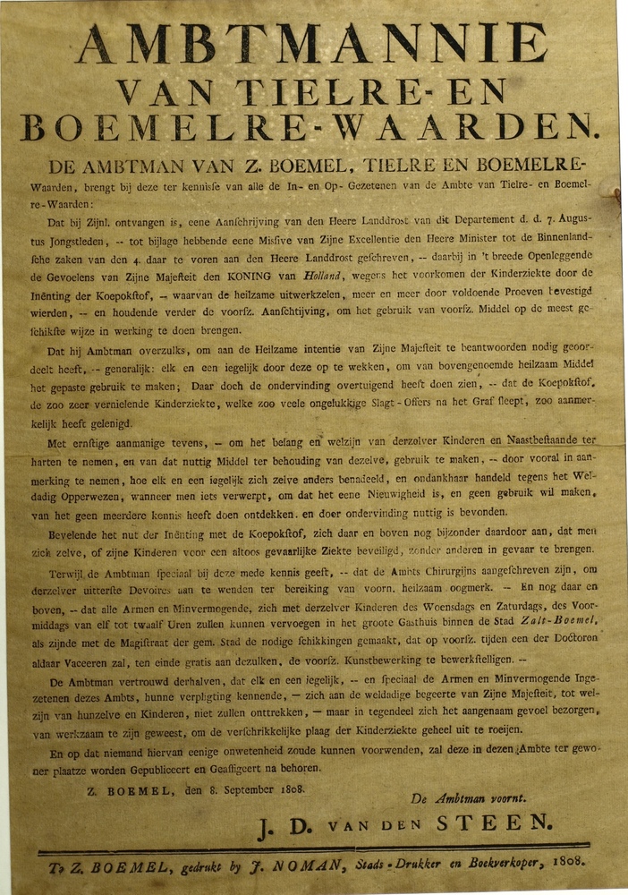 Publicatie Ambtmannie, aangaande inenting tegen koep...