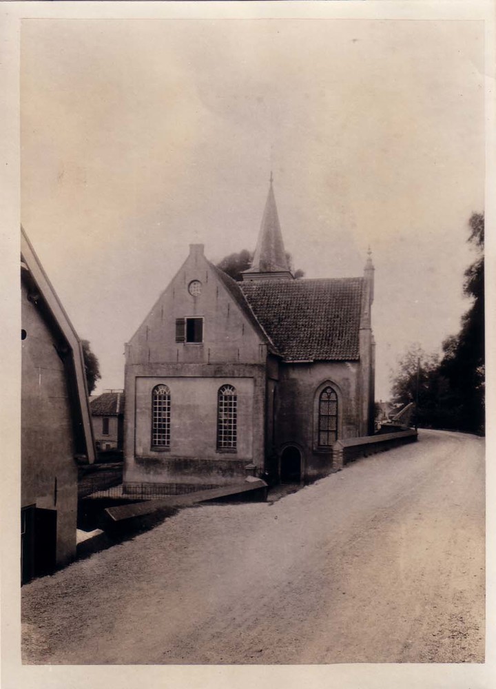 Gezicht op straat, huizen en schuren Kerkdriel. Teke...