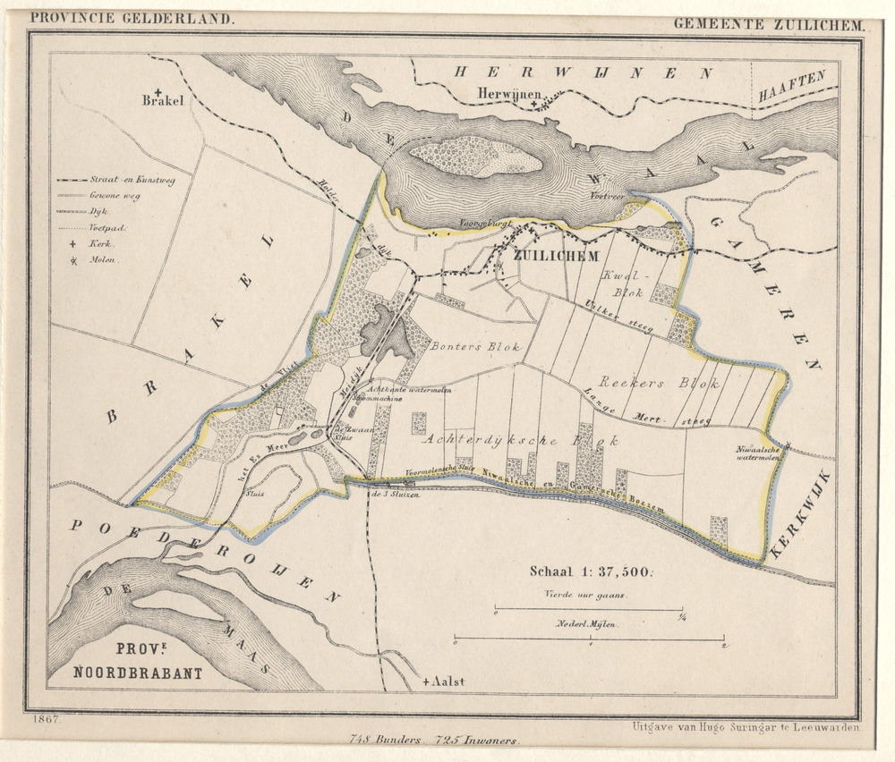 riviergezicht op Zaltbommel en andere steden. Mechan...