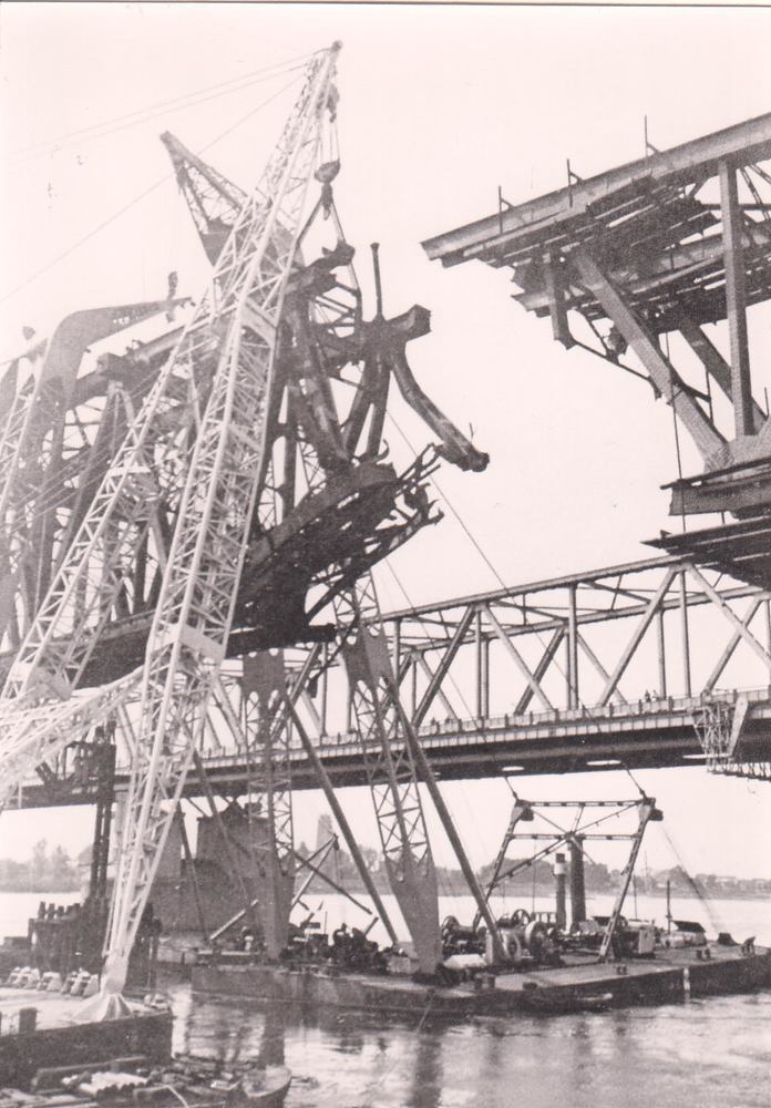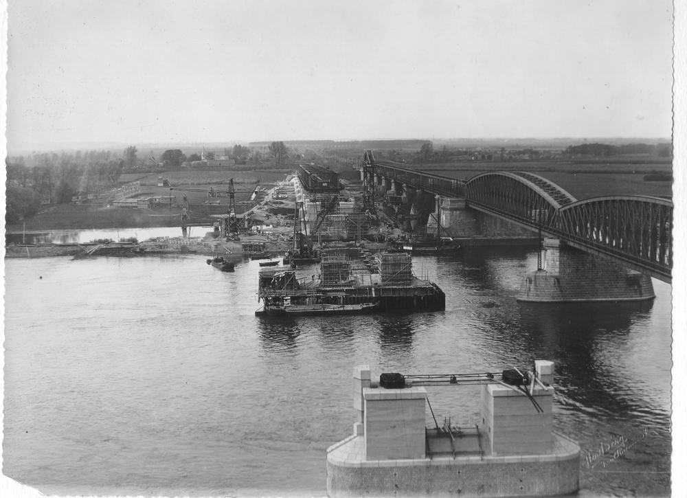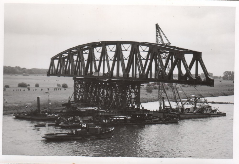 Bouw verkeers en spoorbrug bij Zaltbommel.