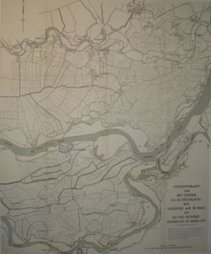 Overzicht verdedigingswerken en de rivier de Waal, Z...
