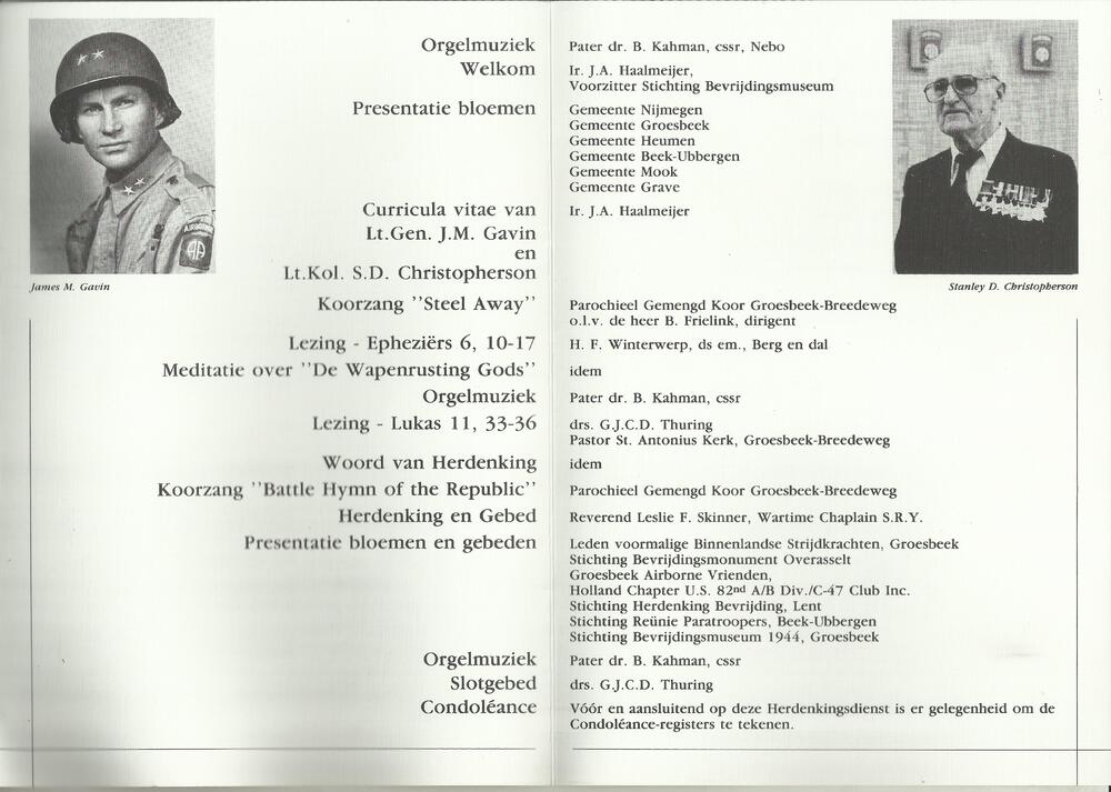 Programma Herdenkingsdienst voor James M. Gavin en S...