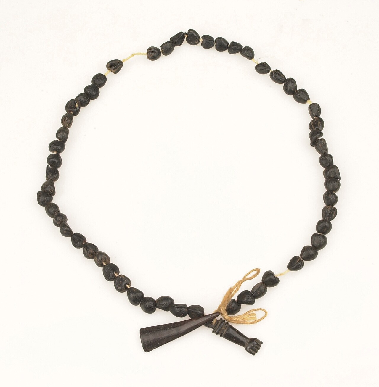 Halssnoer van pitten met hangers van hout en hoorn