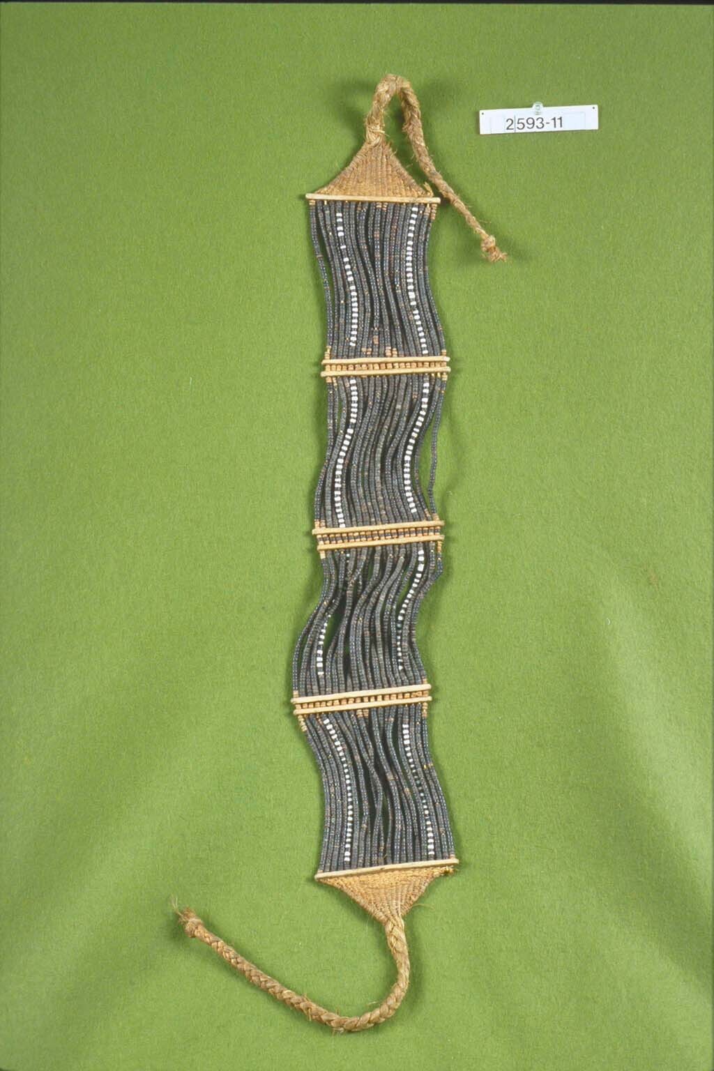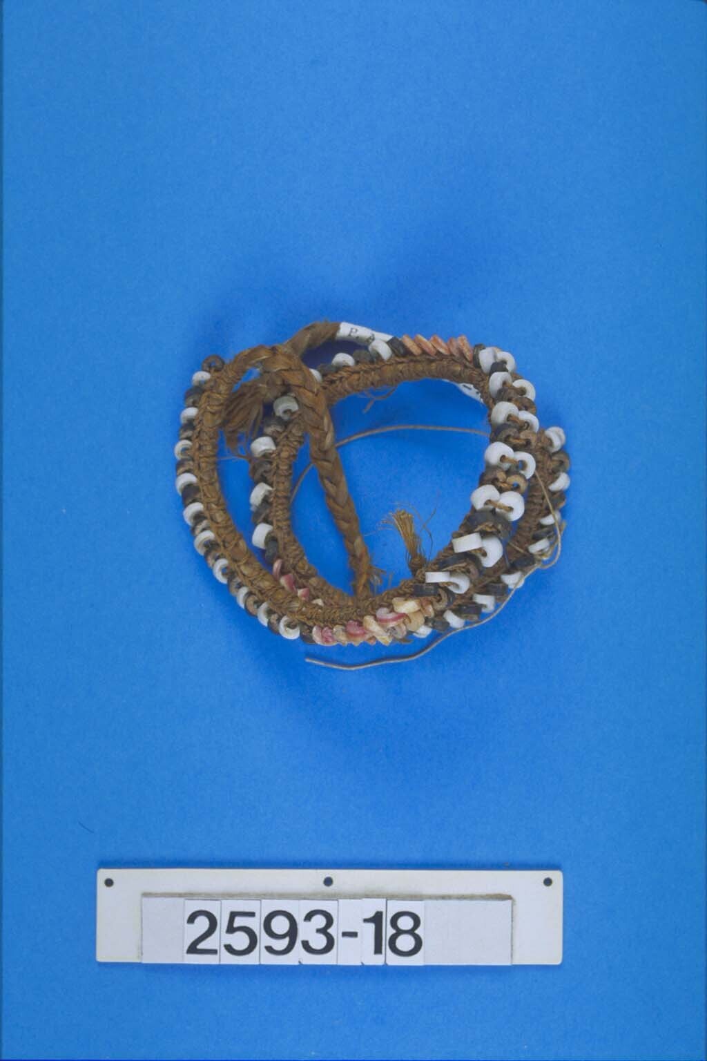 Voorhoofdsversiering van kralen van schelp en kokosnoot