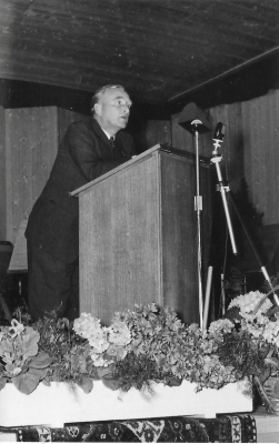 Spreker bij een bijeenkomst die wordt gehouden ter e...