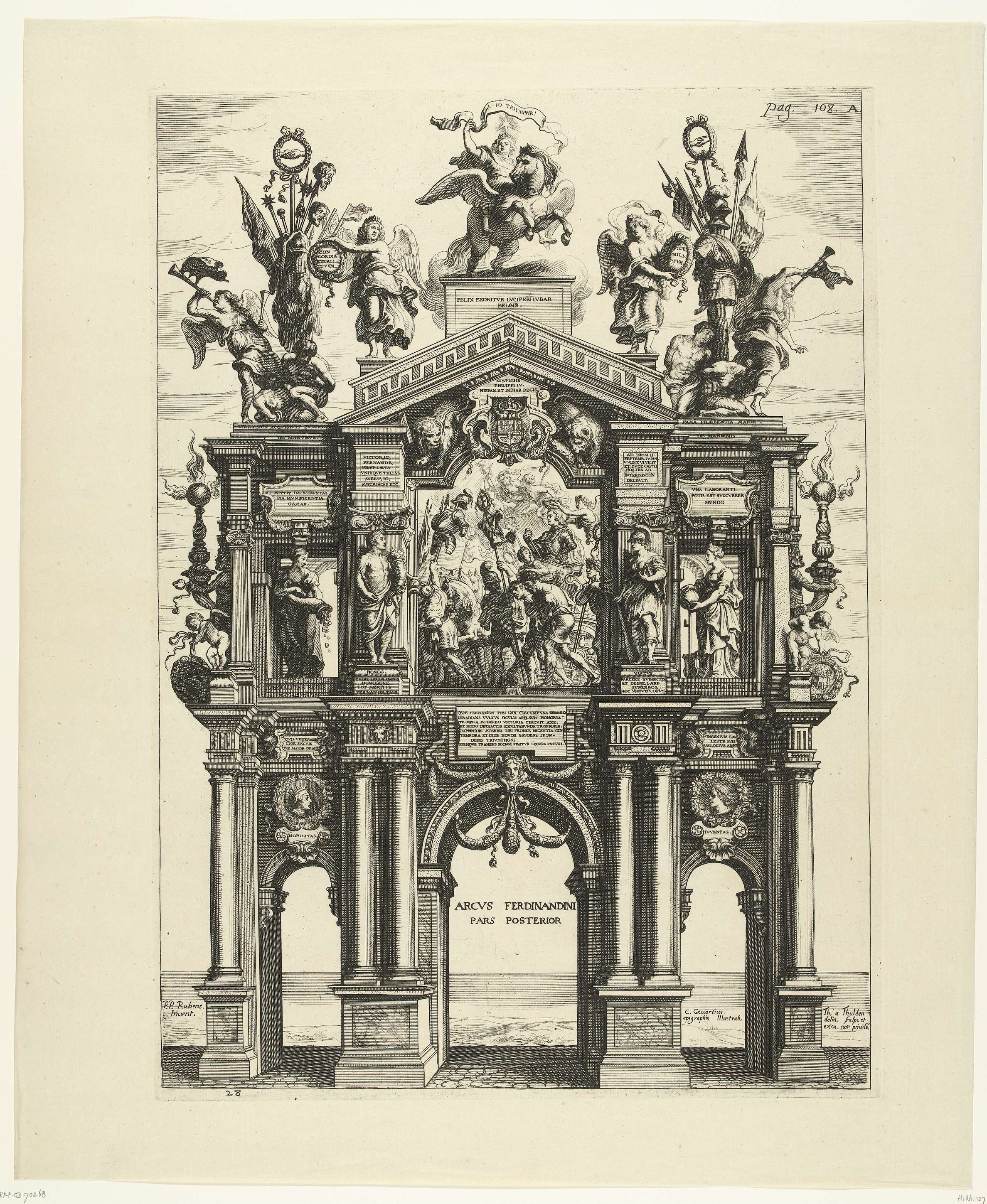 Triomfboog van Ferdinand (achterzijde); intocht van ...