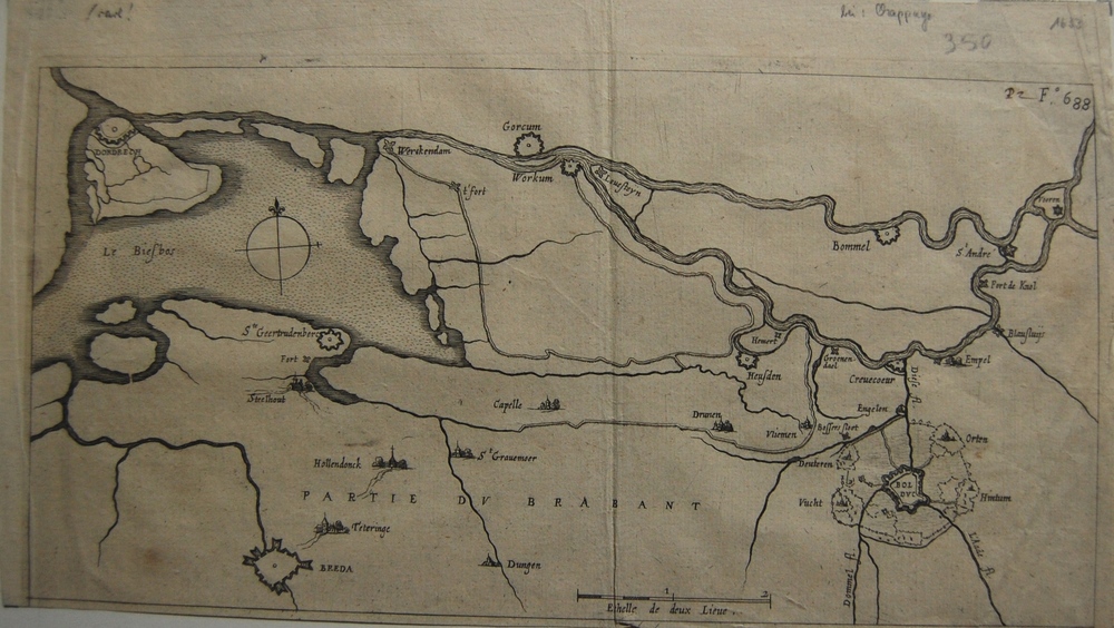kaart van Bommelerwaard en Brabant. Topografische op...