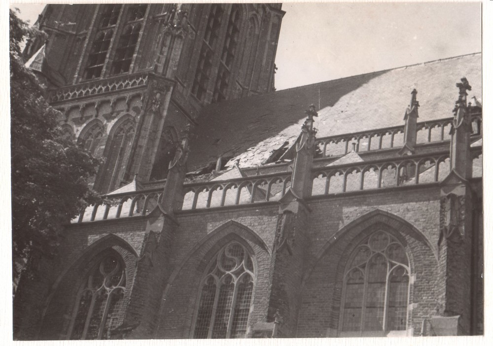 Beschadigde Sint Maartenskerk in de oorlog.