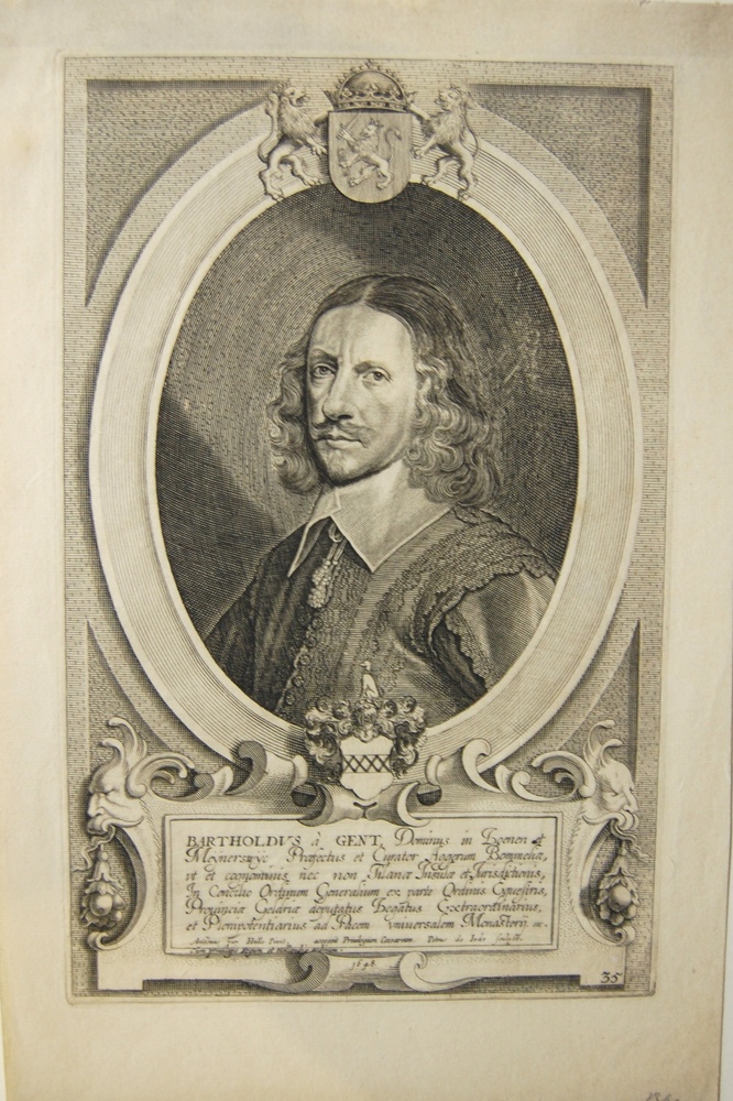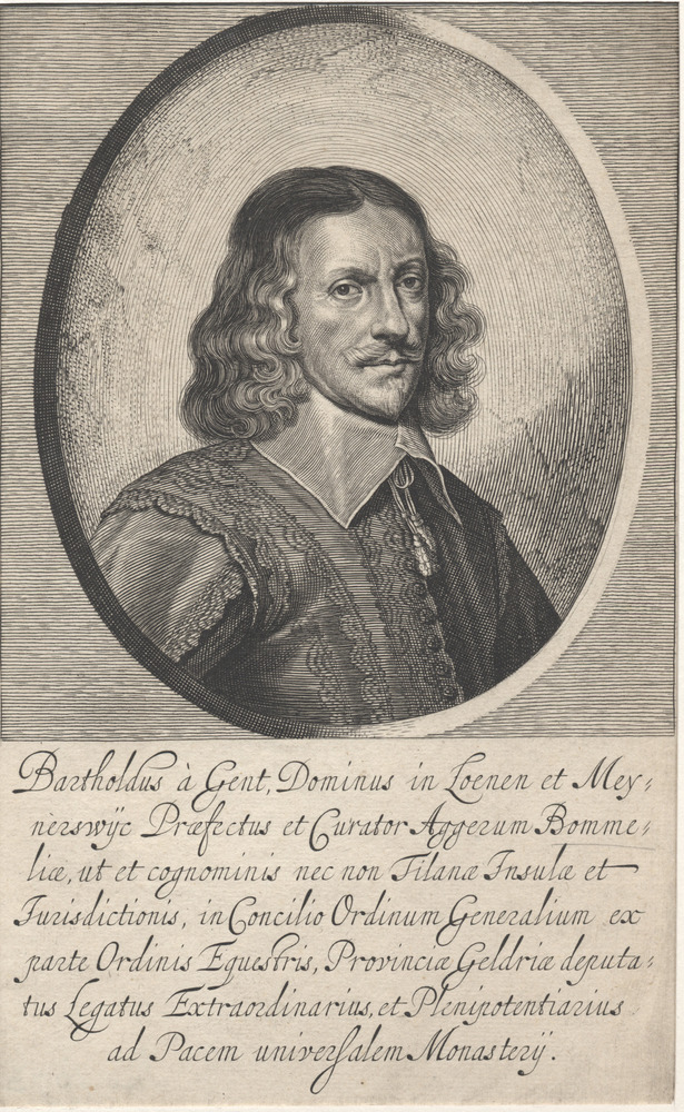 borststuk in ovaal met familiewapen van Bartholdus à...