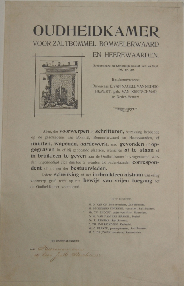 affiche Oudheidkamer Zaltbommel met oproep om voorwe...