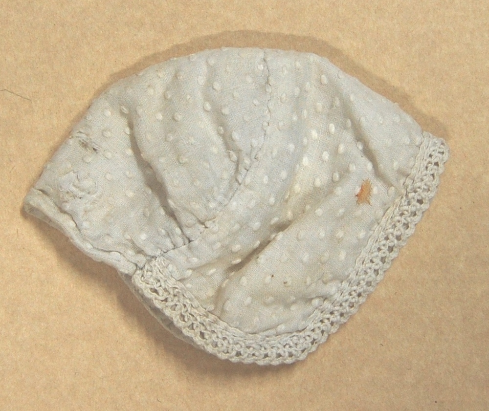 wit zakje van katoen oefenwerkstuk 1900-1950